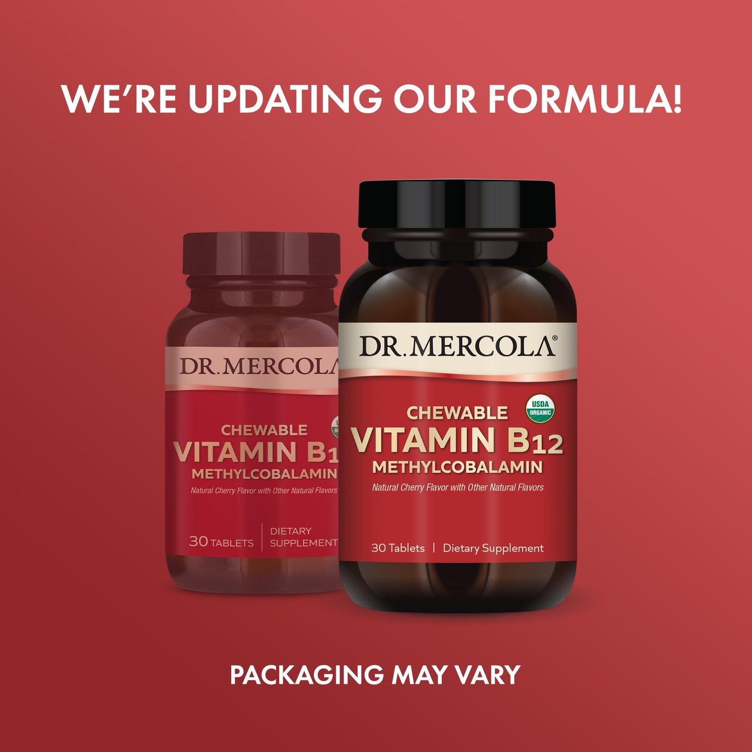 Dr. Mercola Organic Chewable Vitamin B12, 30 Servings (30 Tablets), Natural Cherry Flavor, Dietary Supplement, Supports Energy Production and Mental Focus, Non-GMO, Certified USDA Organic is backordered and will ship as soon as it is back in stock.