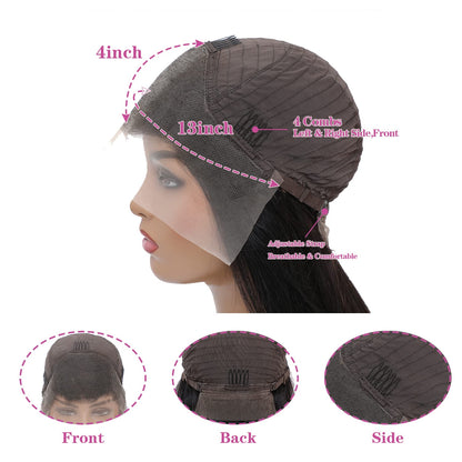 - HD Transparent Lace Front Wigs Human Hair Type: 13x4 straight lace front wigs human hair glueless, pre plucked with natural hairline, baby hair is all around, medium cap size(22.5inch)with 4 combs and adjustable strap, easy to wear and install. 18-32inch is available.