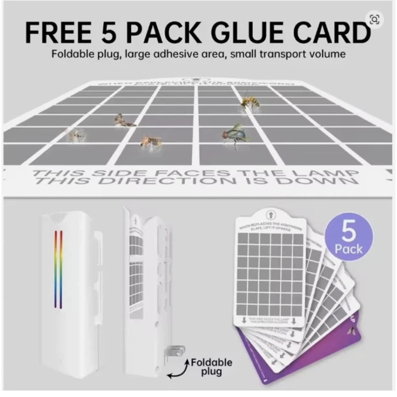 9w uv bulb: To ensure refills for a longer period, we have added to the fly trap providing 5 glue boards. The 9w uv light naturally attracts flying insects to the trap to protect large rooms.