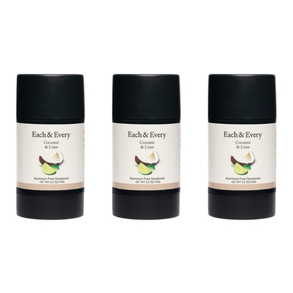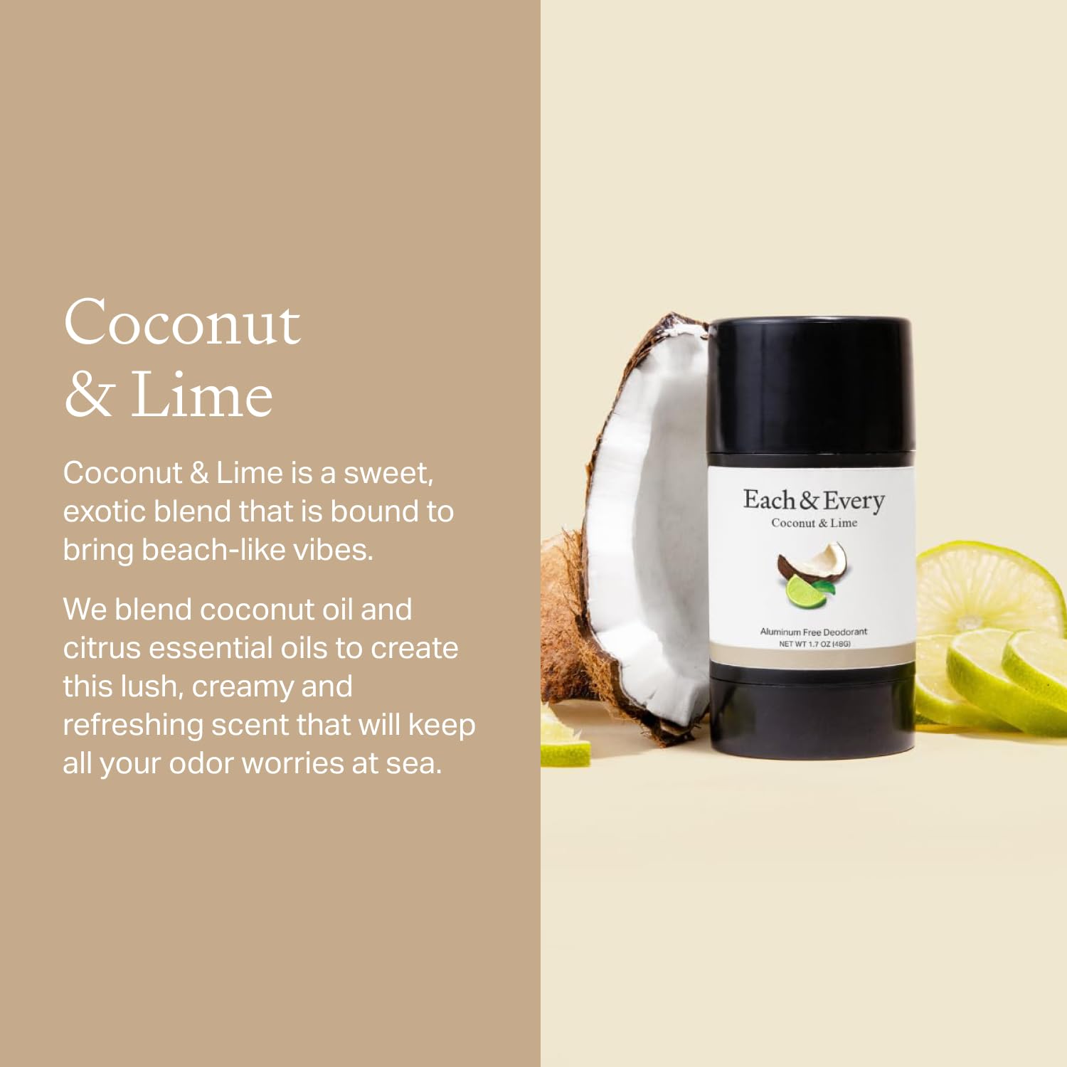 Each & Every All Natural Deodorant for Women & Men - Sensitive Skin, Plant-Based, Baking Soda & Aluminum-Free Deodorant - Long Lasting 24 Hr Odor Control - Coconut & Lime Travel Size (3 Pack, 2.5oz)