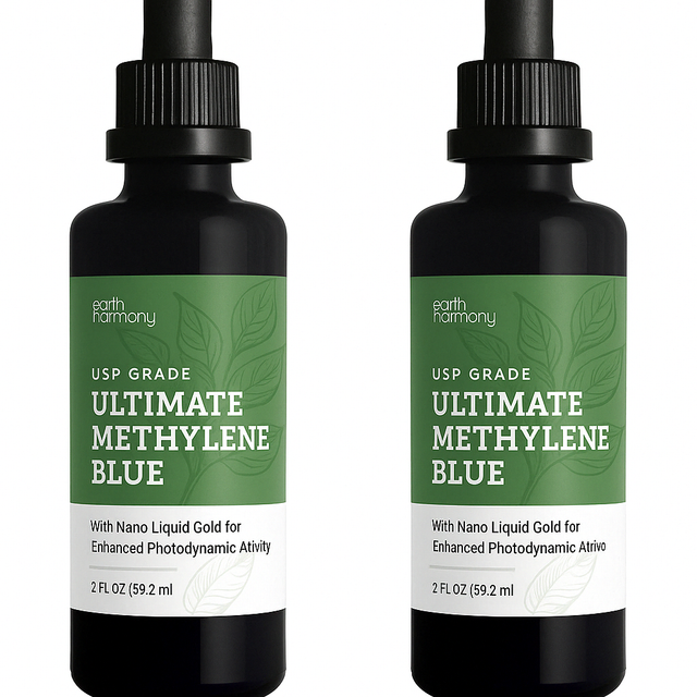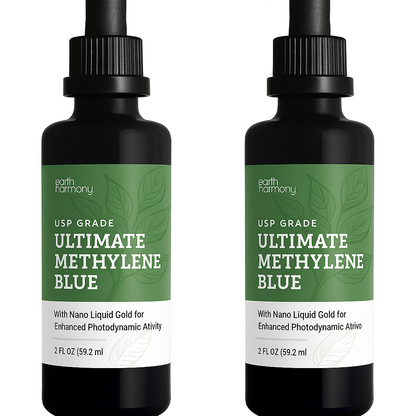 2 Pack Earth Harmony Methylene Blue 1% Pharmaceutical Grade Supplement with Dropper, Includes Nano Liquid Gold, Methylene Blue USP Grade, No Formaldehyde (2 Oz)