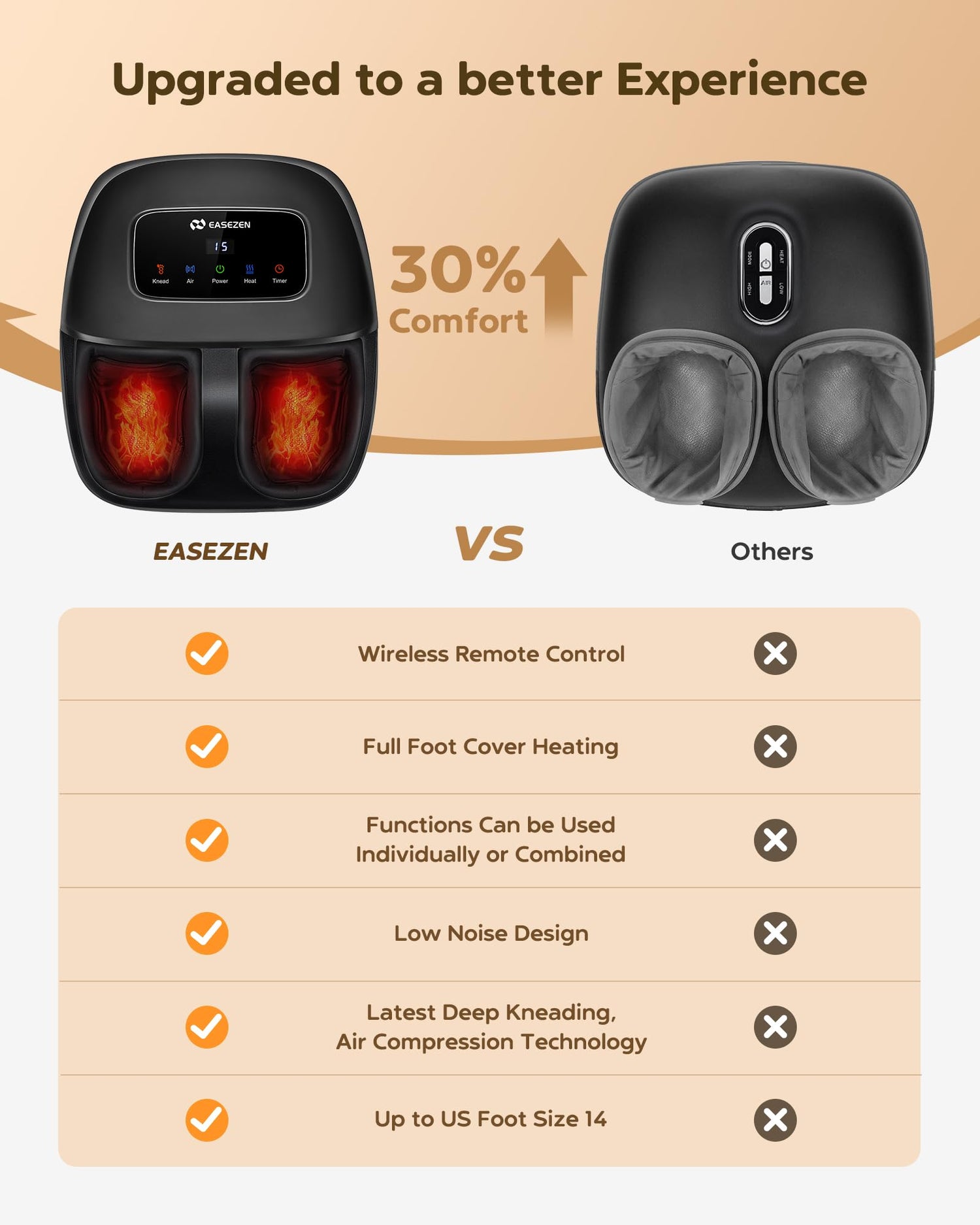 - One Foot Massager for Whole Family: With its enlarged foot rooms, EaseZen【 2025 Upgraded】electric foot massager for plantar fasciitis and can accommodate almost all foot sizes up to men size 14 , the whole family can enjoy a total relax foot massage at home.