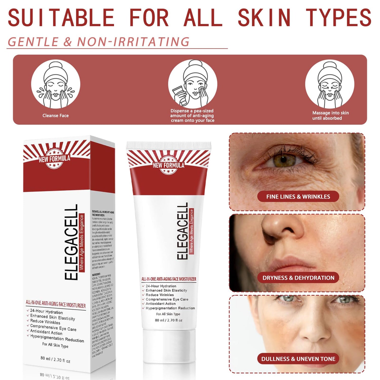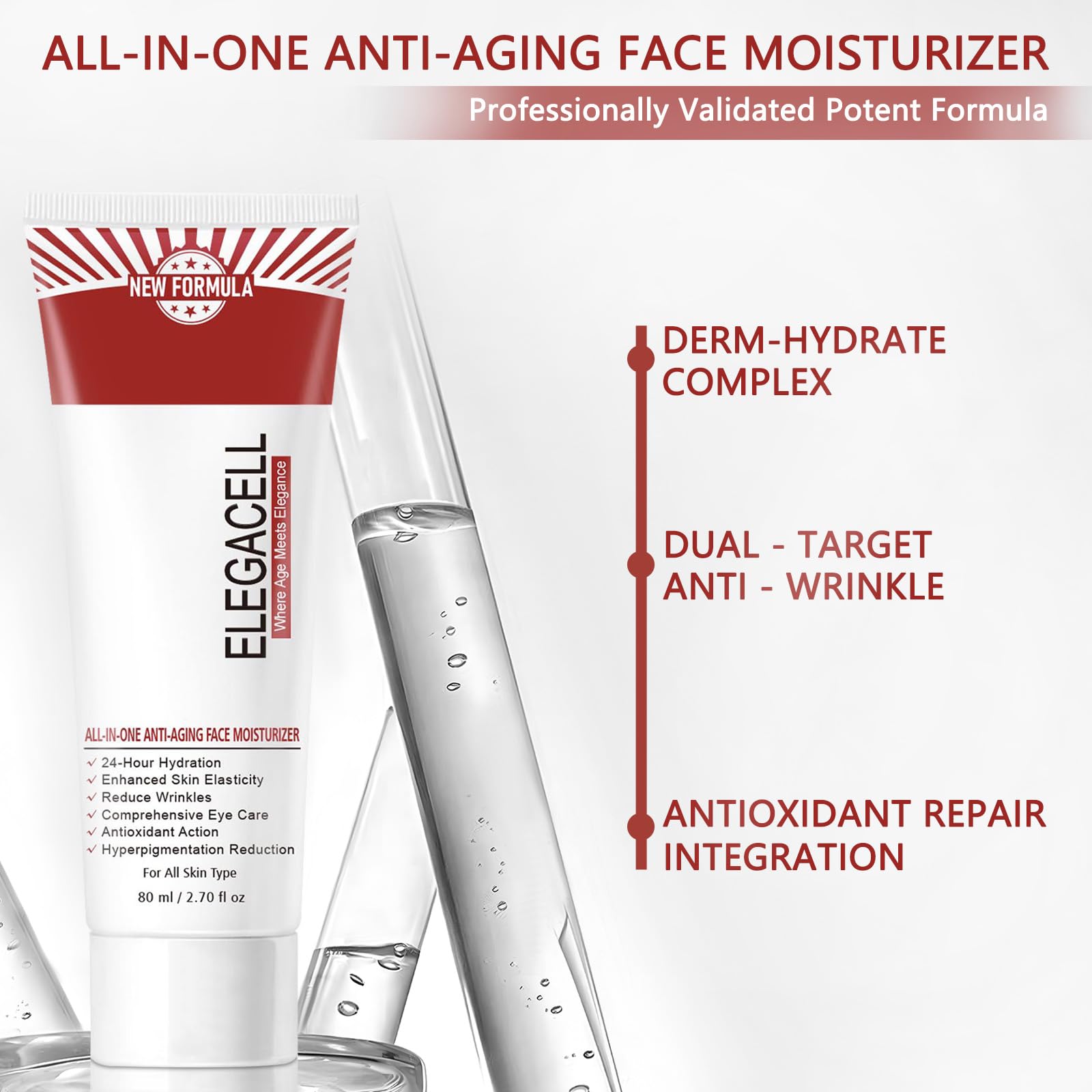 Elegacell Skincare All In One Anti Aging Treatment Face Moisturizer Skin Tightening Retinol Cream for Face - Suit for Men and Women 2.7 fl.oz