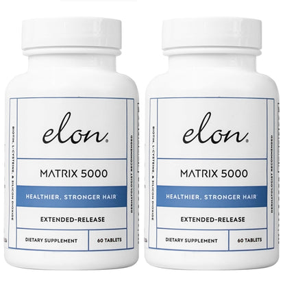 - ELON MATRIX 5000 –- Our Biotin 5000 mcg hair supplement contains the right spectrum of pharma-grade ingredients that support hair growth, boosts keratin and provides essential hair growth vitamins and minerals that promote stronger, longer hair.