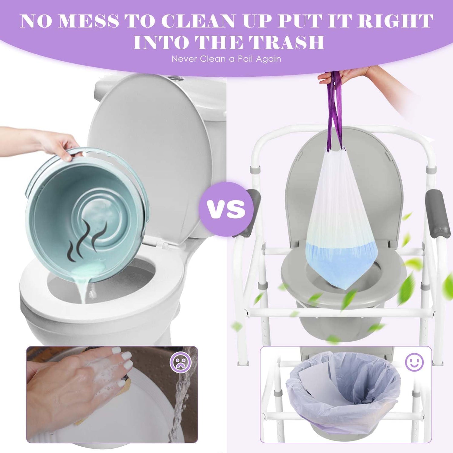 - [Premium Material & Extra Thick] These bedside commode liners disposable are made of medical grade LDPE plastic with high load bearing, tear and puncture resistant properties.No more worries about tears and leaks.