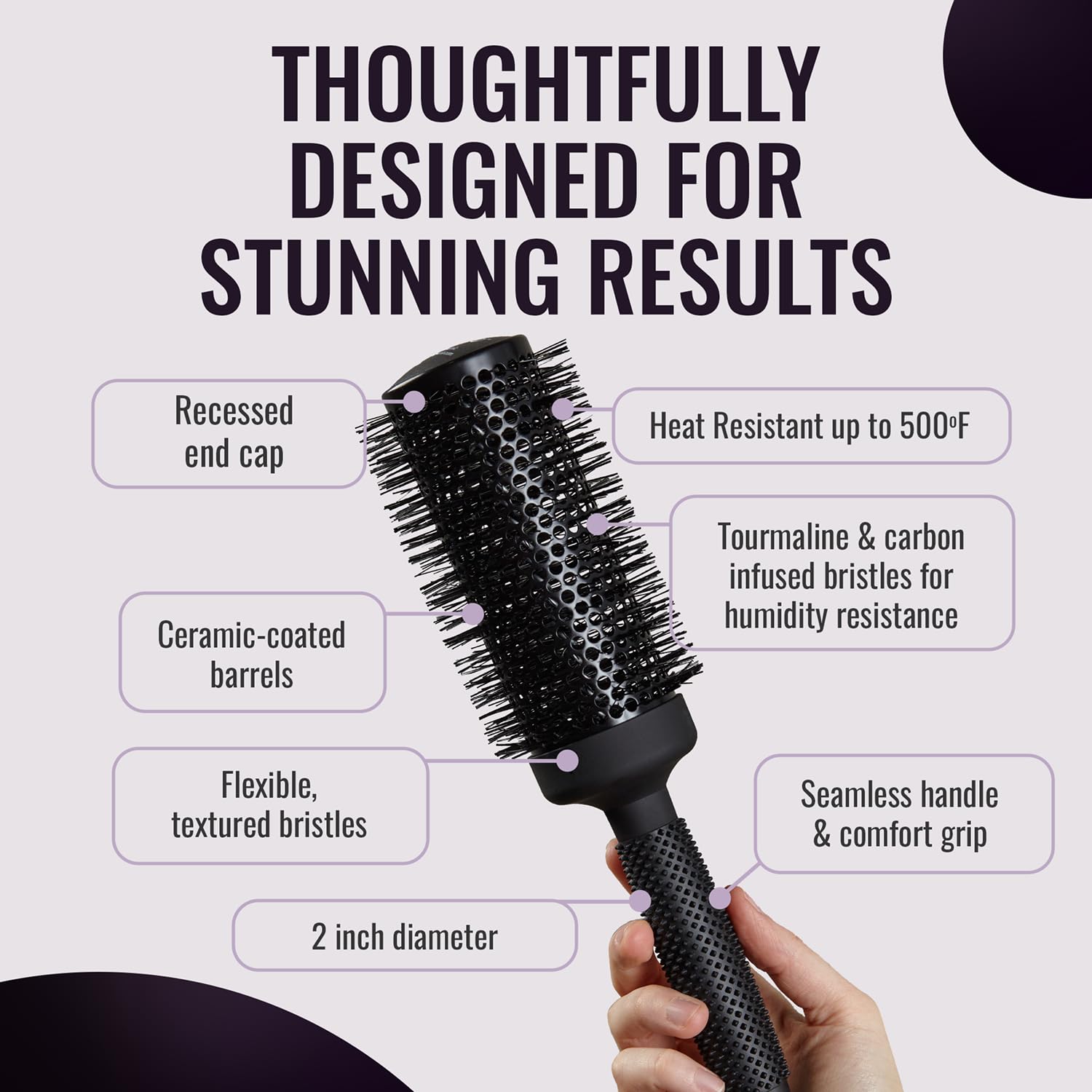 - Travel-Ready & Versatile Brushes for Hair: This 2-inch round brush is the perfect size for styling most hair types and lengths. It's also lightweight making this blow out brush easy to pack for travel