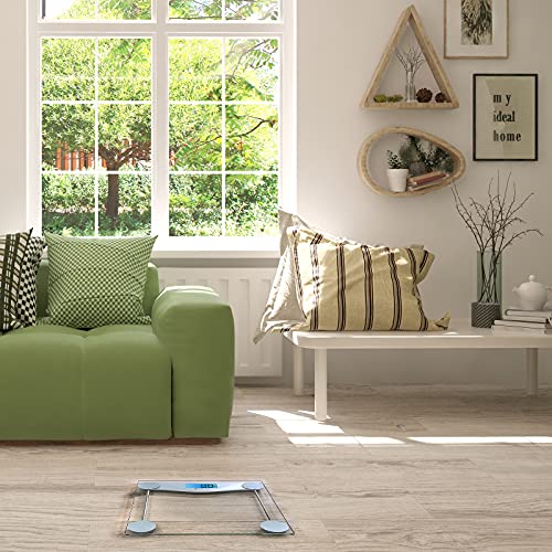 Details: RELIABLE READINGS in an instantβstep on the large platform and receive accurate measurements in pounds or kilograms. Specifications: 1. Weigh up to 400lb / 180kg. 2. PRECISION BUILT with 4 high-precision sensors, delivering results with a 0.2lb / 3oz. 3. Accuracy resolution cleanly displayed on an easy-to-read LCD screen. 4. TEMPERED STRENGTH: Built with a thick and durable 6 mm clear tempered glass platform resilient enough to provide years of fitness tracking. Note: 1.Check the scale before using. Do not use the scale if it is damaged. 2.Do not strike or bang on the scale and do not use the scale if there is a slight crack on the glass. Due to the nature of tempered glass, the glass will shatter if there is a slight crack.