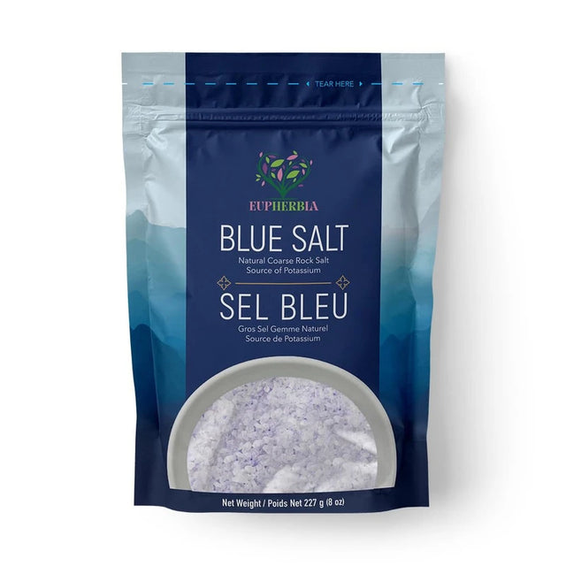 Eupherbia EUPHERBIA Blue Salt, Coarse, Rare Mineral Salt, High Potassium, Lower Sodium, Natural, Unprocessed, Hand Harvested, Kosher Certified, 227g (8 Oz)