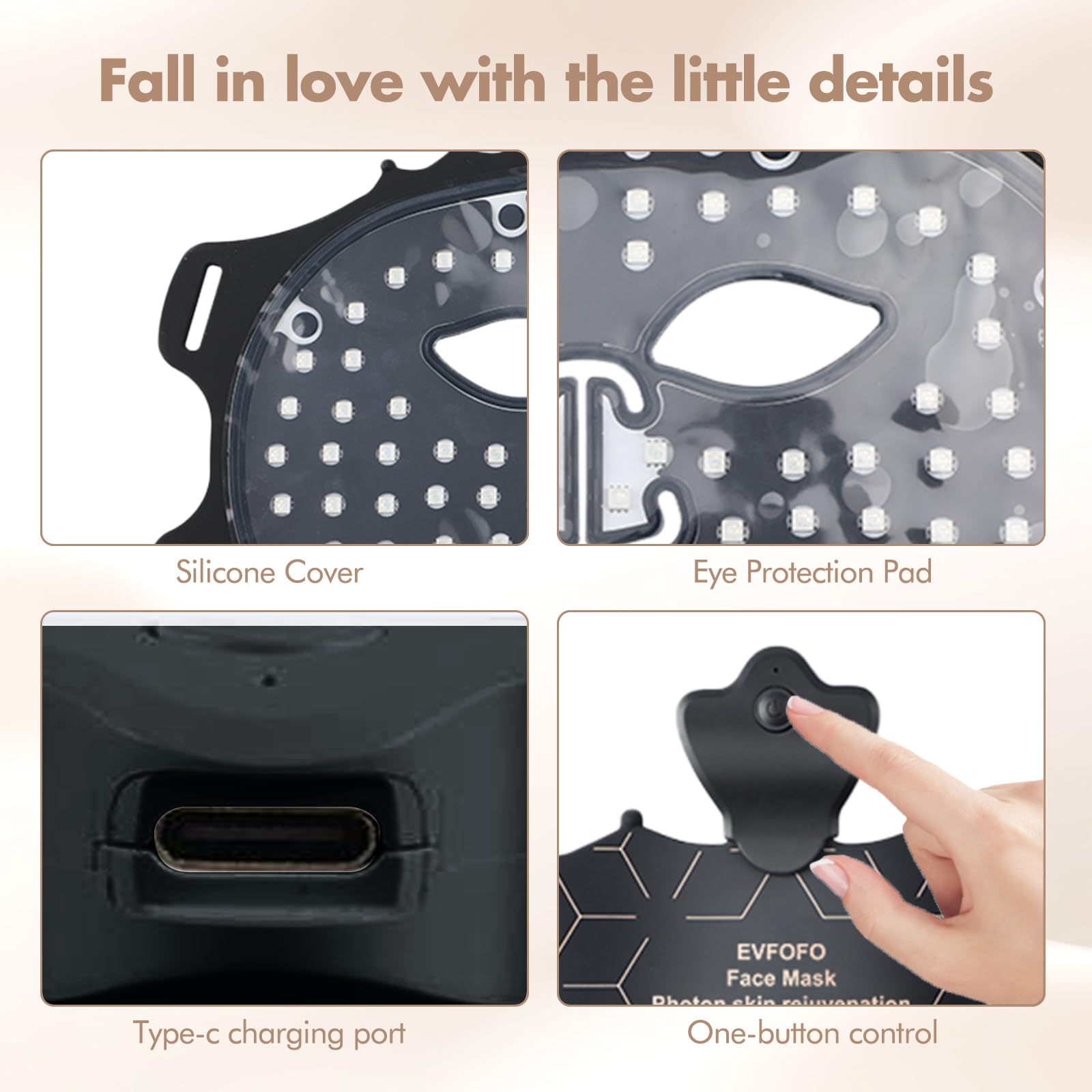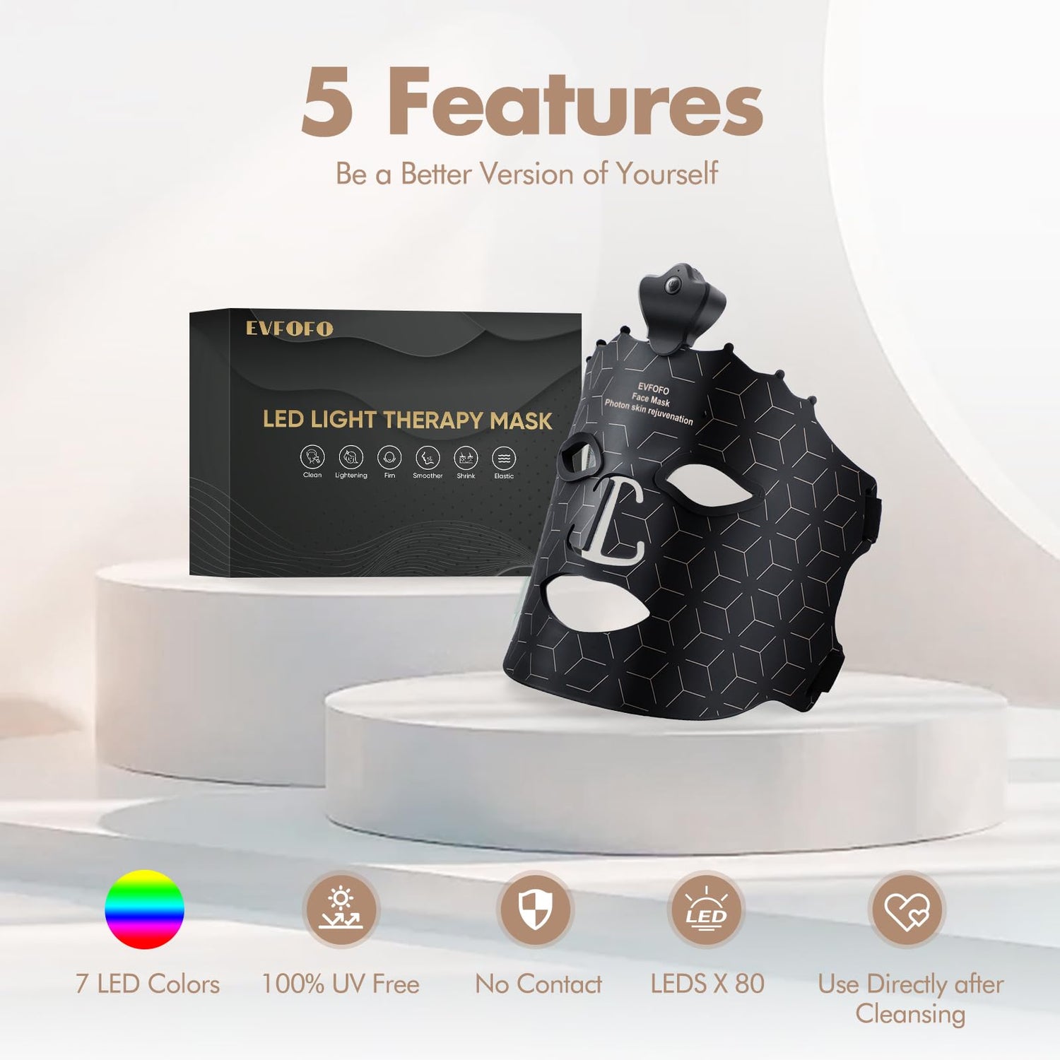 EVFOFO Red Light Therapy Mask for Face, 7 Colors LED Face Mask Light Therapy At Home, Led Face Mask Light Therapy, Black
