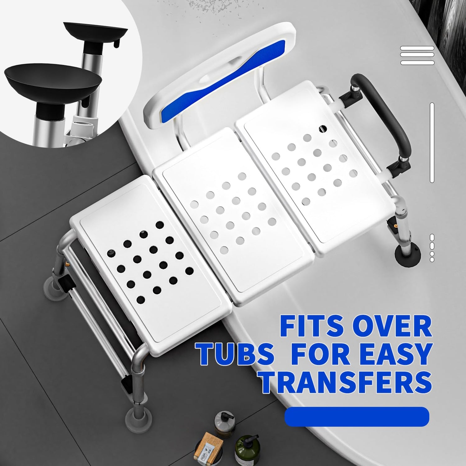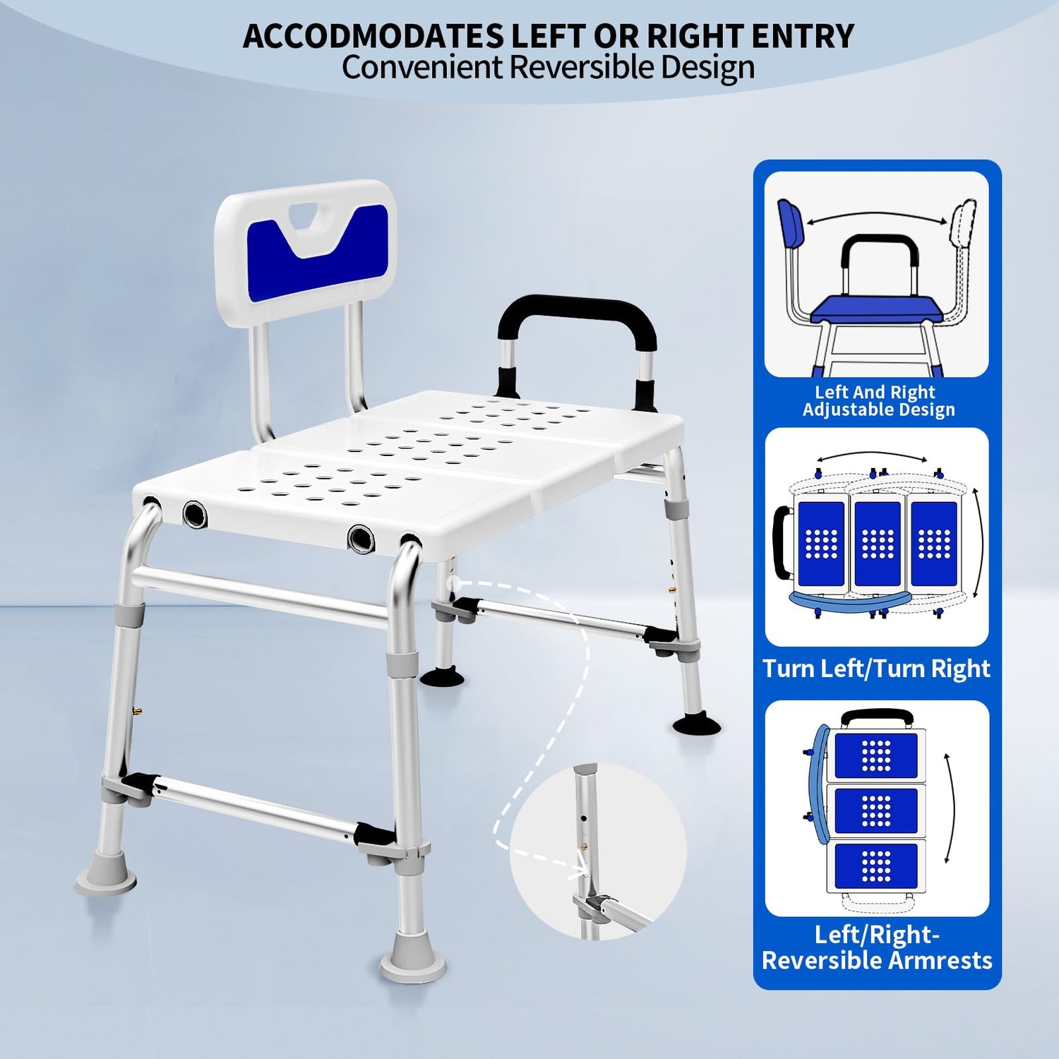 Extended Bath Tub Transfer Shower Bench for Inside Shower Bathtub to Sit On Chair Bathtubs Safety Seating Stool for Adults Handicap Seniors Elderly Disabled with Back Arms Bathroom Shower Stall