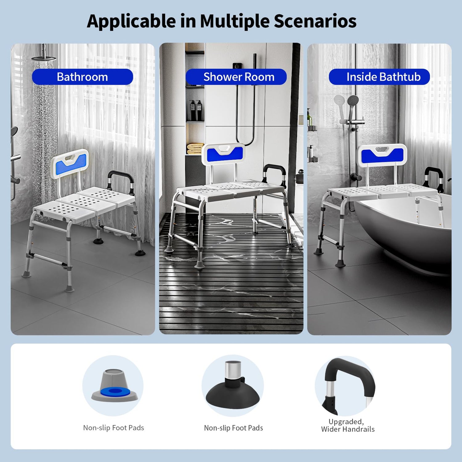 Extended Bath Tub Transfer Shower Bench for Inside Shower Bathtub to Sit On Chair Bathtubs Safety Seating Stool for Adults Handicap Seniors Elderly Disabled with Back Arms Bathroom Shower Stall is backordered and will ship as soon as it is back in stock.