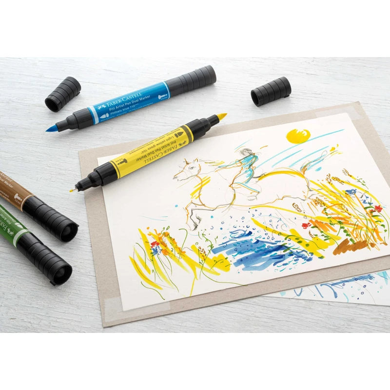 - DUAL TIPS the smooth and flexible brush nib is ideal for artistic work, and the metal encased fibre-tip is ideal for detailed drawings and outlines.