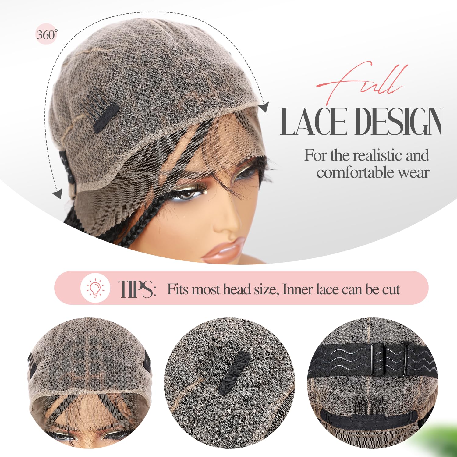 - 【Easy to Wear】 Full lace box braided wig is a complete wig. you can wear it directly after you receive it. it can help you to save more time. Super easy for beginners
