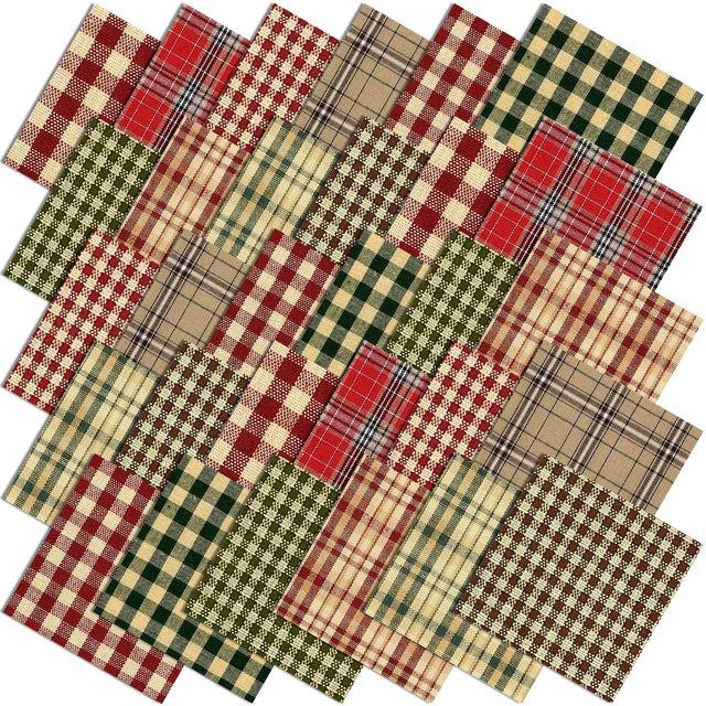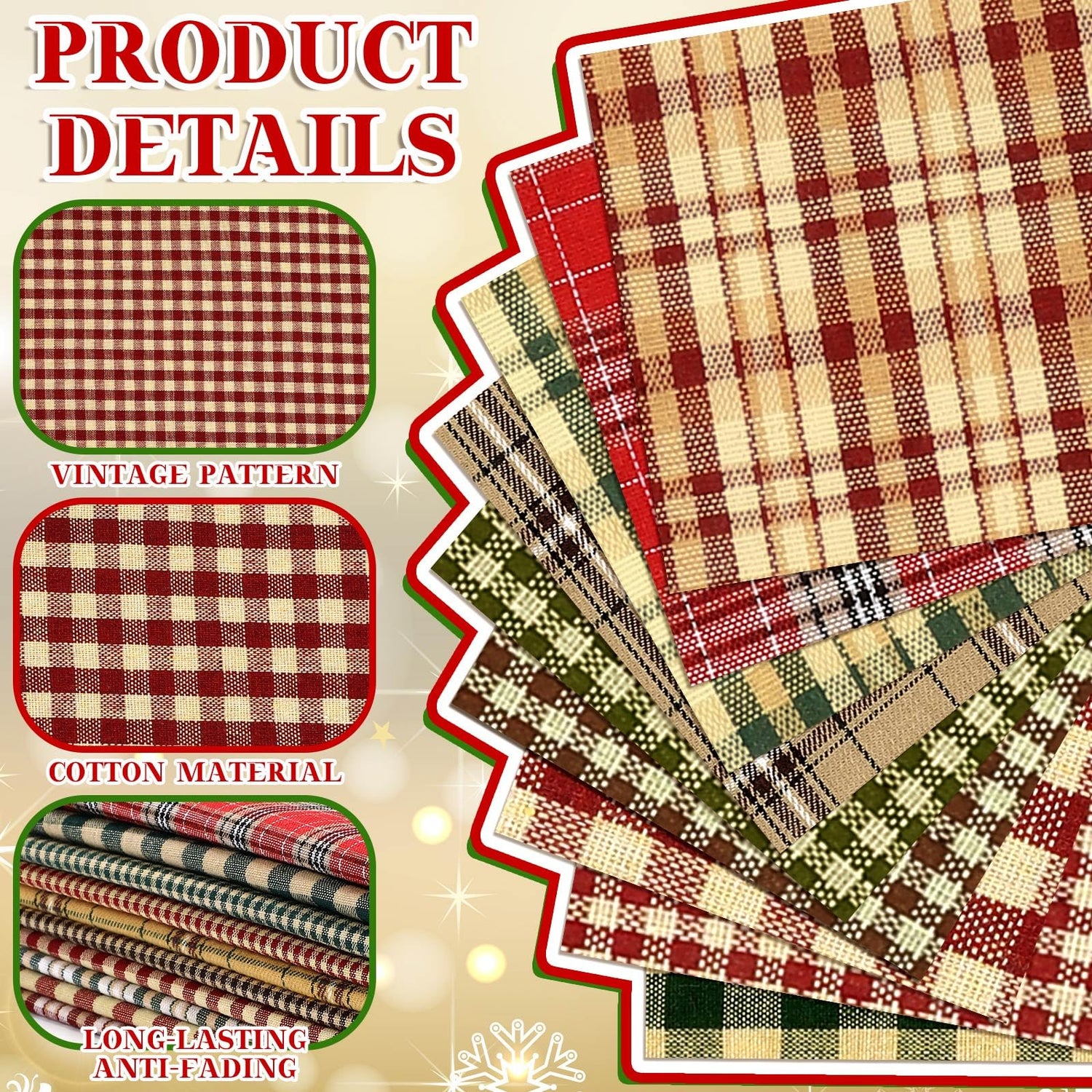 Fanfanwin 60 Pcs 10 x 10 Inch Vintage Christmas Quilting Fabric Plaid Homespun Cotton Fabric Jelly Squares Lattice Rustic Precut Santa Claus Quilting Strips for Xmas Craft Sewing DIY
