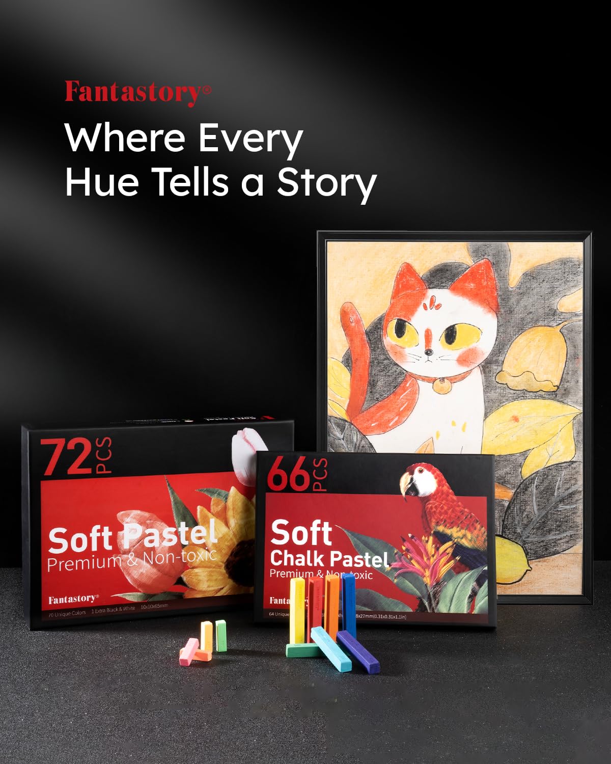 - For Various Art Styless: The soft texture of these art chalk allows smooth drawing, blending, and coloring on paper as well as traditional boards, blackboards, and even sidewalks. Compared to Oil Pastels, Chalk Pastels achieve more impressive and vibrant artistic effects, thanks to its finely textured pastel particles. Fantastory pastels are a versatile tool for artists.