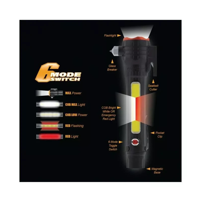 Farpoint Emergency Auto Tool - Seat Belt Cutter Glass Breaker 6 Mode Flashlight.