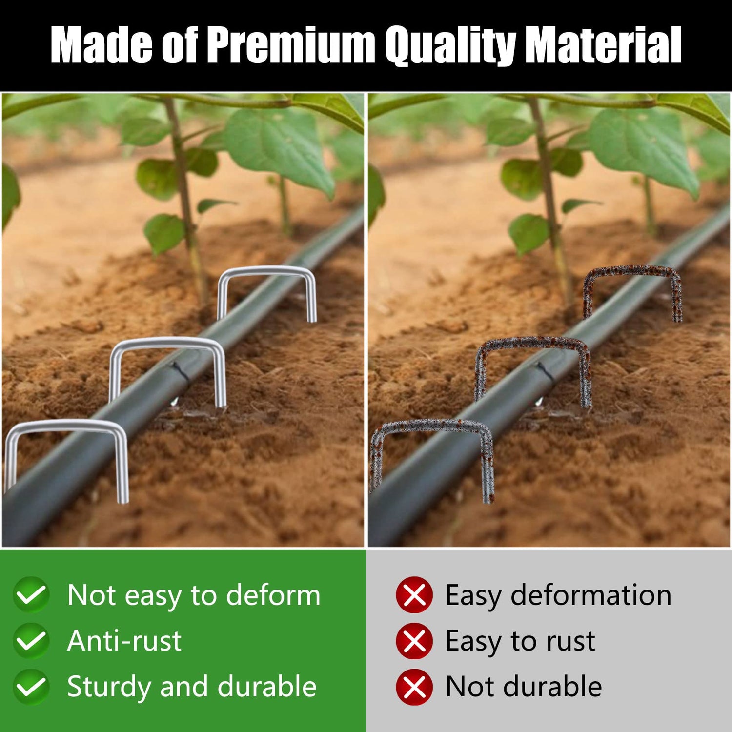 - 【MATERIAL】Our landscape pins are made of heavy duty galvanized steel. Premium quality makes them durable and can be reused many times. Our landscape fabric stakes are made of durable galvanized steel. It is so strong to insert into the ground with adjustable width.
