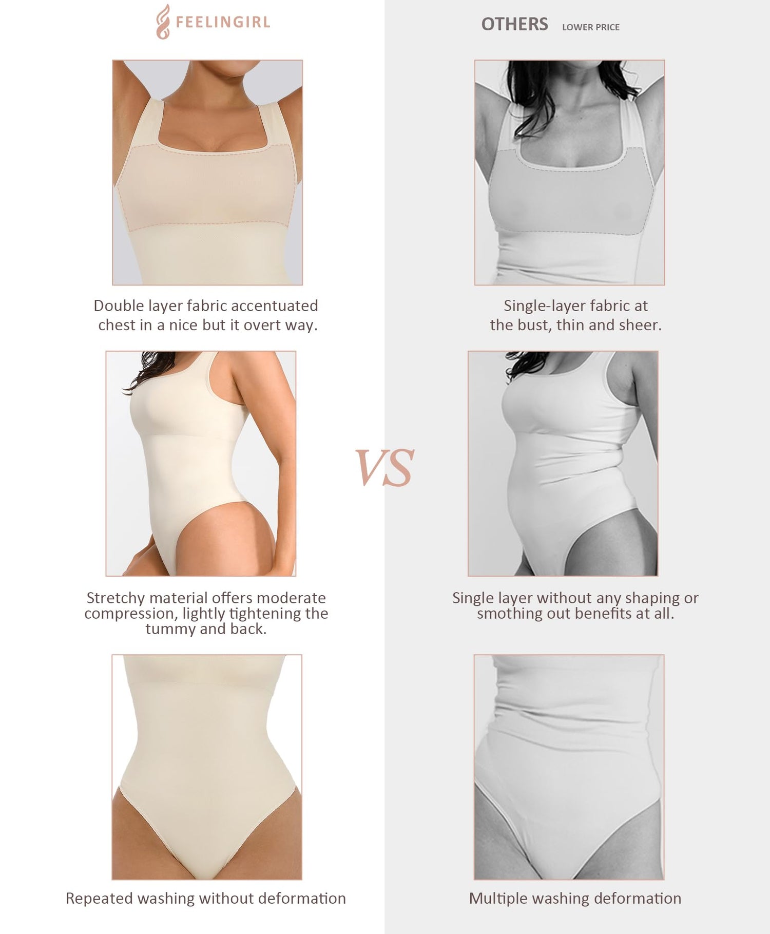 FeelinGirl Bodysuits for Women Square Neck Tummy Control Tank Tops Bodysuit for Women Compression Bodysuit White M/L