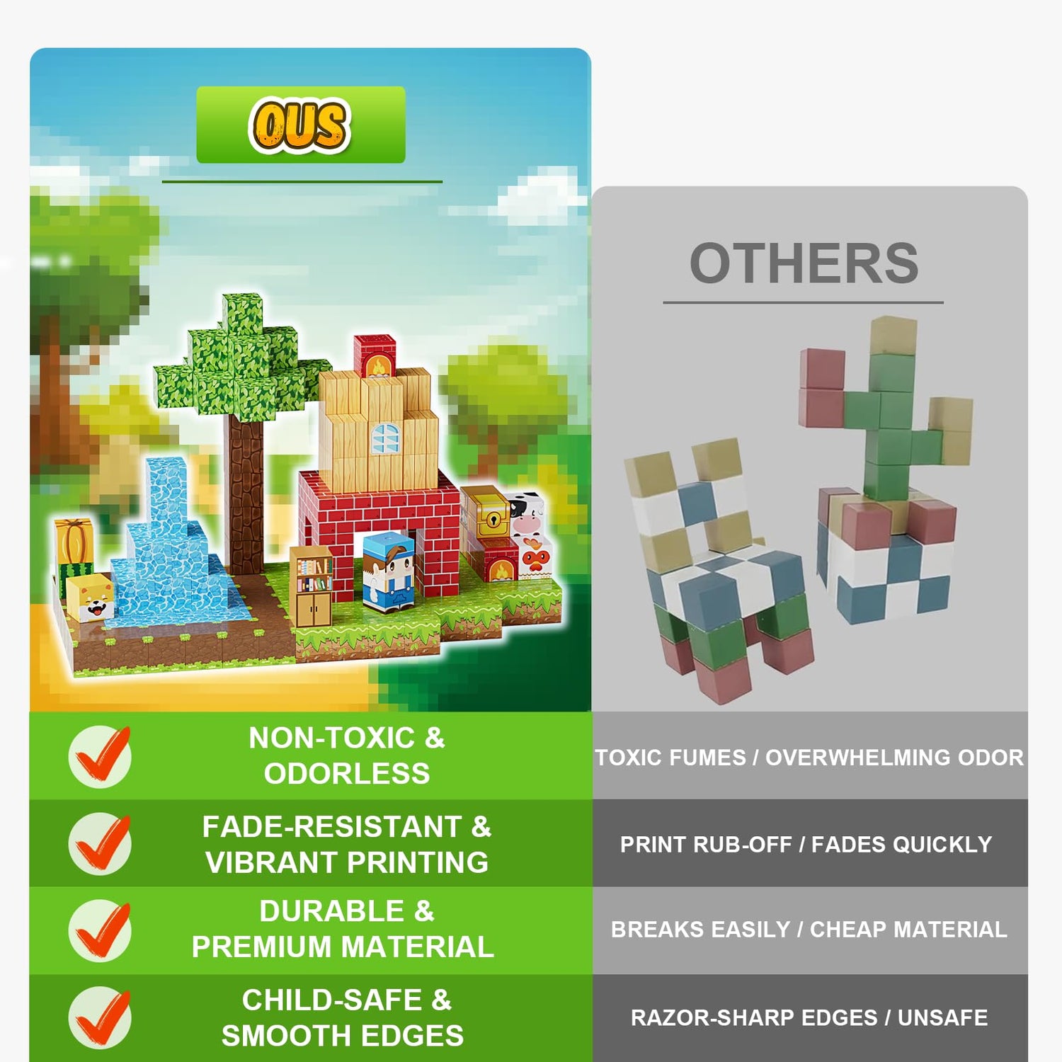 - Sensory Learning for Toddlers : These magnetic building cubes are more than just fun — they’re sensory-rich educational toys that help toddlers learn, play, and build confidence through hands-on construction. Designed to capture attention with their bell-like rustling sound, these blocks promote creative thinking, focus, patience, hand-eye coordination, motor skills, and cooperation — all while sparking joy and curiosity.