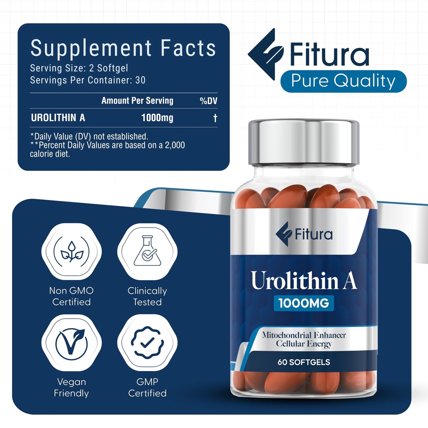 Fitura Healthy Aging Urolithin A - 1000mg, 60 Softgels Mitopure - for Muscle Strength & Cellular Energy - Mitochondrial Function & Overall Wellness