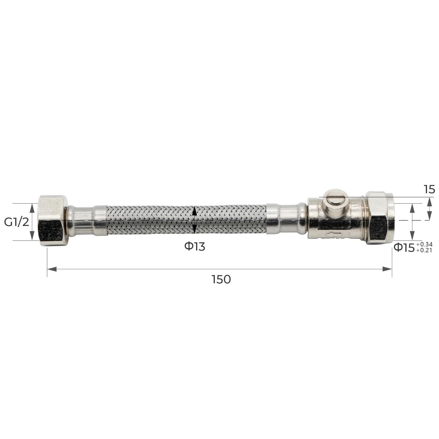 - DIMENSIONS: Hose Diameter. 13mm Length:150mm. For connecting 15mm male pipe fittings. The compression fitting connects to the end of 15mm copper pipe.
