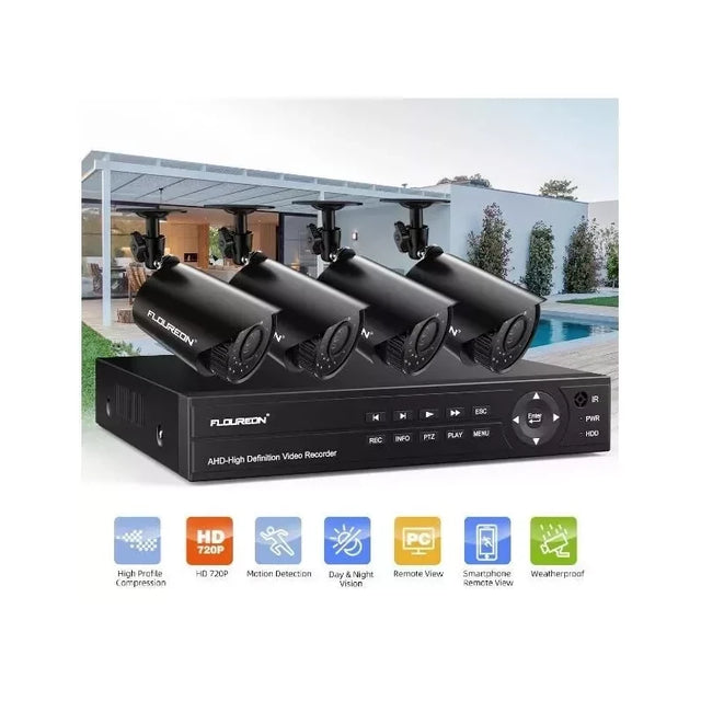 Floureon Security Camera NTSC System 4 AHD Cameras, 1080P, 8CH DVR