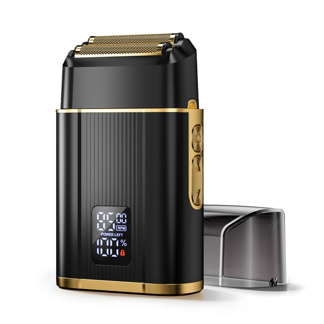 - LED Display:For your convenience,our electric razor has a metal body with led display. The LED display accurately shows the battery level percentage and provides a low battery indication. Press and hold the electric shaver on/off button for 3 seconds to trigger a trip lock to avoid extra power consumption.