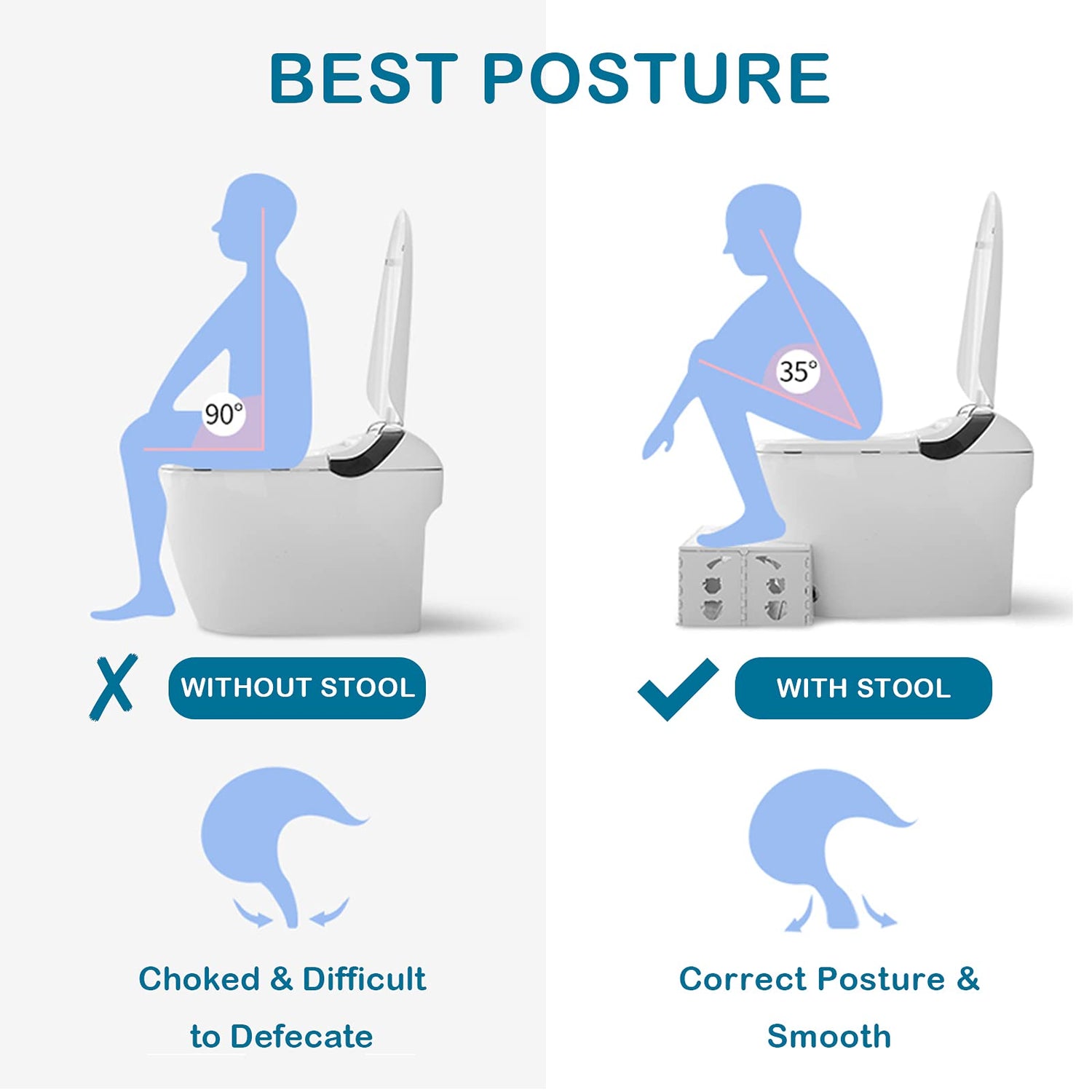 - ★ Healthy & Happy Toliet Time - CHEAGO folding toilet step stool is designed to improve your colon health, 7" height to correct squatting posture for better defecation and helps reduces consipation. With the curve U design that fits every toilet, allows for an easier and better experience in the bathroom.