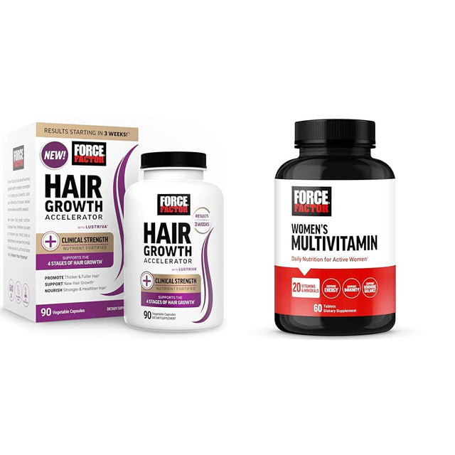 Force Factor Hair Growth Accelerator Capsules, Lustriva & Biotin + Women’s Multivitamin, Multivitamin for Women