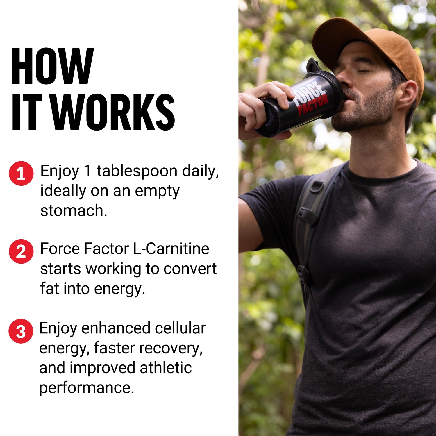 - RECOVER FROM WORKOUTS FASTER: Force Factor L Carnitine supplement helps replenish cellular energy to reduce fatigue, and promote muscle repair.