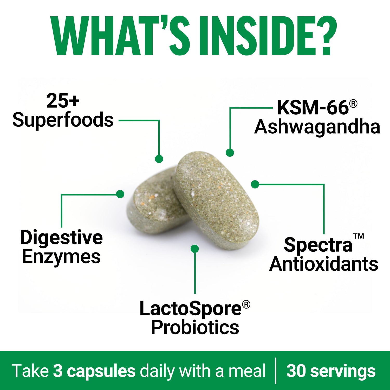 - PACKED WITH 25+ SUPERFOODS: Nourish your health and wellness with nutrients from more than 25 fruits, vegetables, and superfoods like kale, broccoli, wheatgrass, brussels sprouts, cinnamon, exotic berries, turmeric, and more.