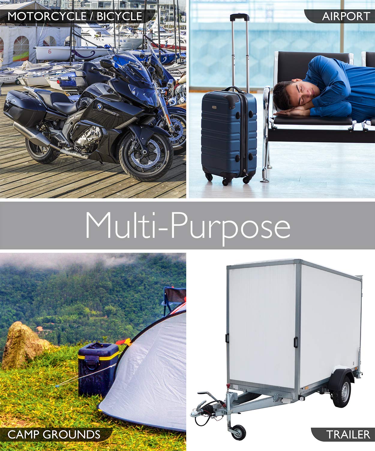 - [Multi-Purpose Alarm] Use this anti-theft alarm for a variety of purposes: as a luggage alarm, fence alarm, trailer alarm, and more. This device works great as added security when used with locks as well.