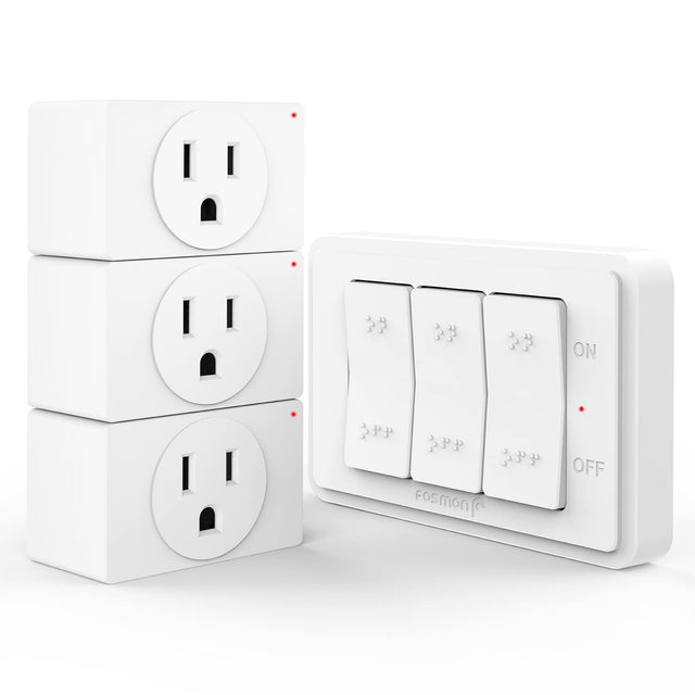 - [CONVENIENT WIRELESS LIGHT SWITCH] Fosmon’s WavePoint wireless outlet switch allows you to add a wall switch to your light or fan without electrical wiring or hiring an electrician. By simply plugging the receiver to an outlet and mounting the switch on the wall or using it as a hand-held remote, you can turn the outlet on and off with a simple click. It is perfect for lighting, electronics, or small appliances.