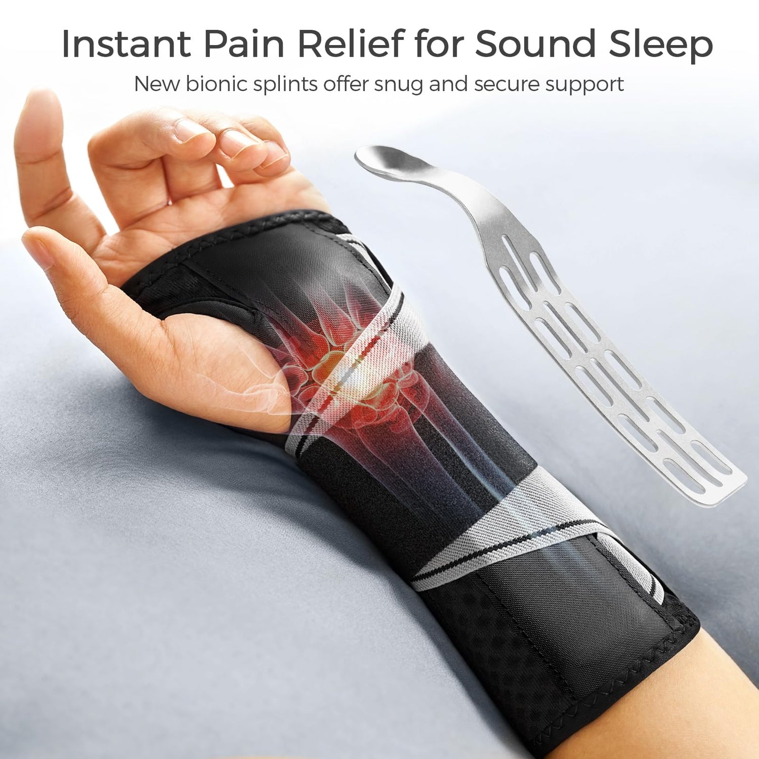 - 【Metal Plates Support Wrist for Pain Relief】:This wrist splint for carpal tunnel adopts ergonomic spoon-shaped bent metal rod, and the 15° upturned design fits the curve of the palm, keeping the wrist stay straight with stability, relieving carpal tunnel wrist pain or hand numbness during work or sleep.