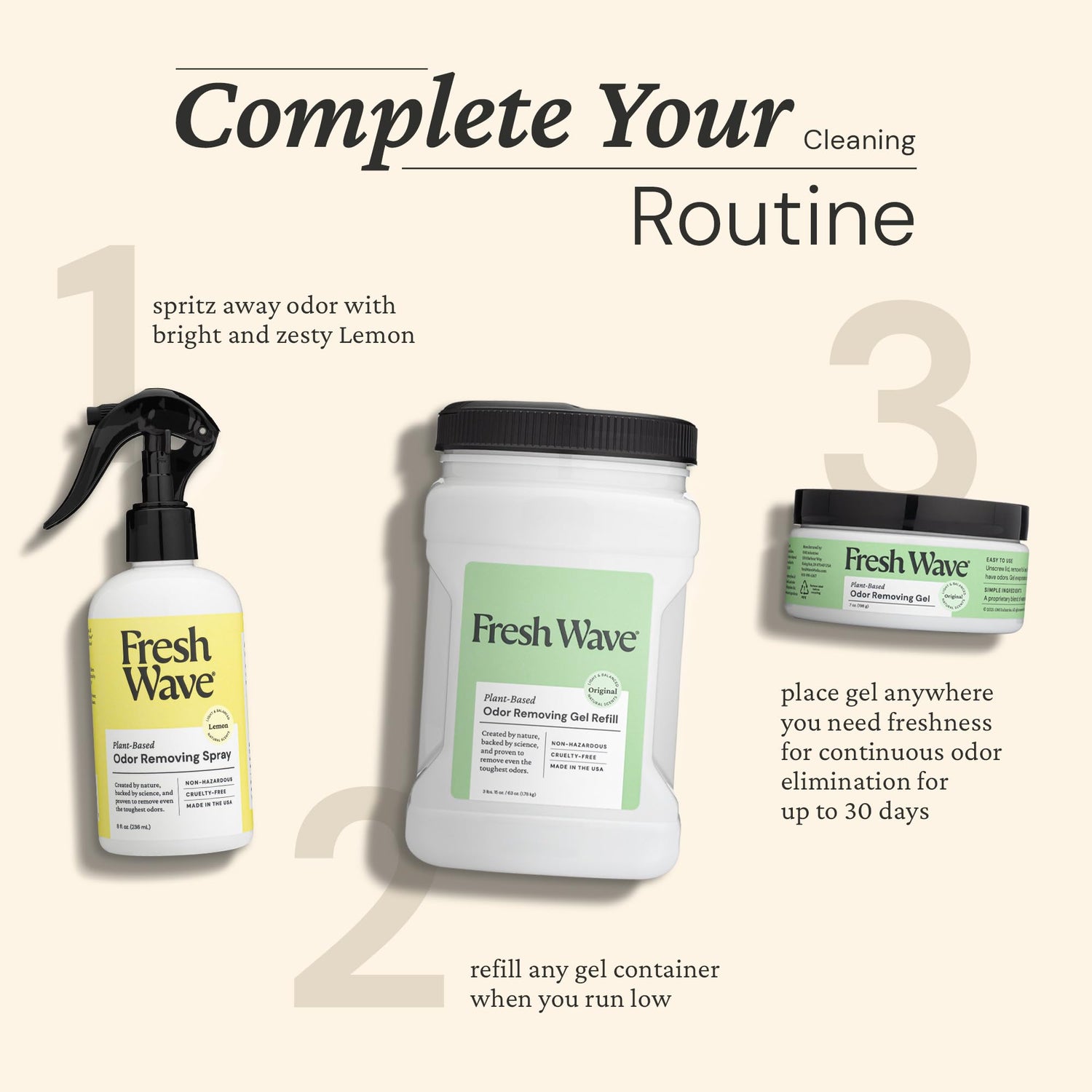 - Fresh Wave Gels get rid of everyday odors and replace them with clean, fresh air. Refills make it easy to refresh whenever you need it.