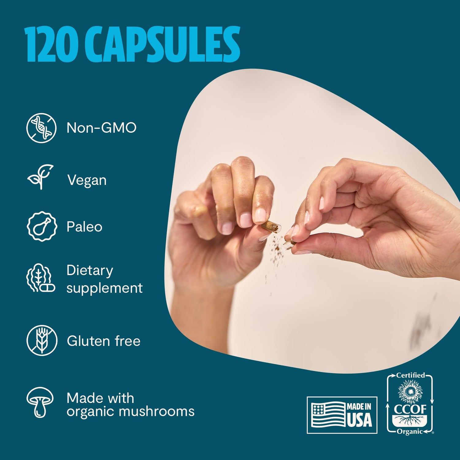 - EASY DAILY UMMUNE SUPPORT – Each bottle contains 120 capsules, offering a 2-month supply when taken at the recommended serving size of 2 capsules per day. These mushroom supplement capsules integrate seamlessly into your daily routine, providing consistent immune support.