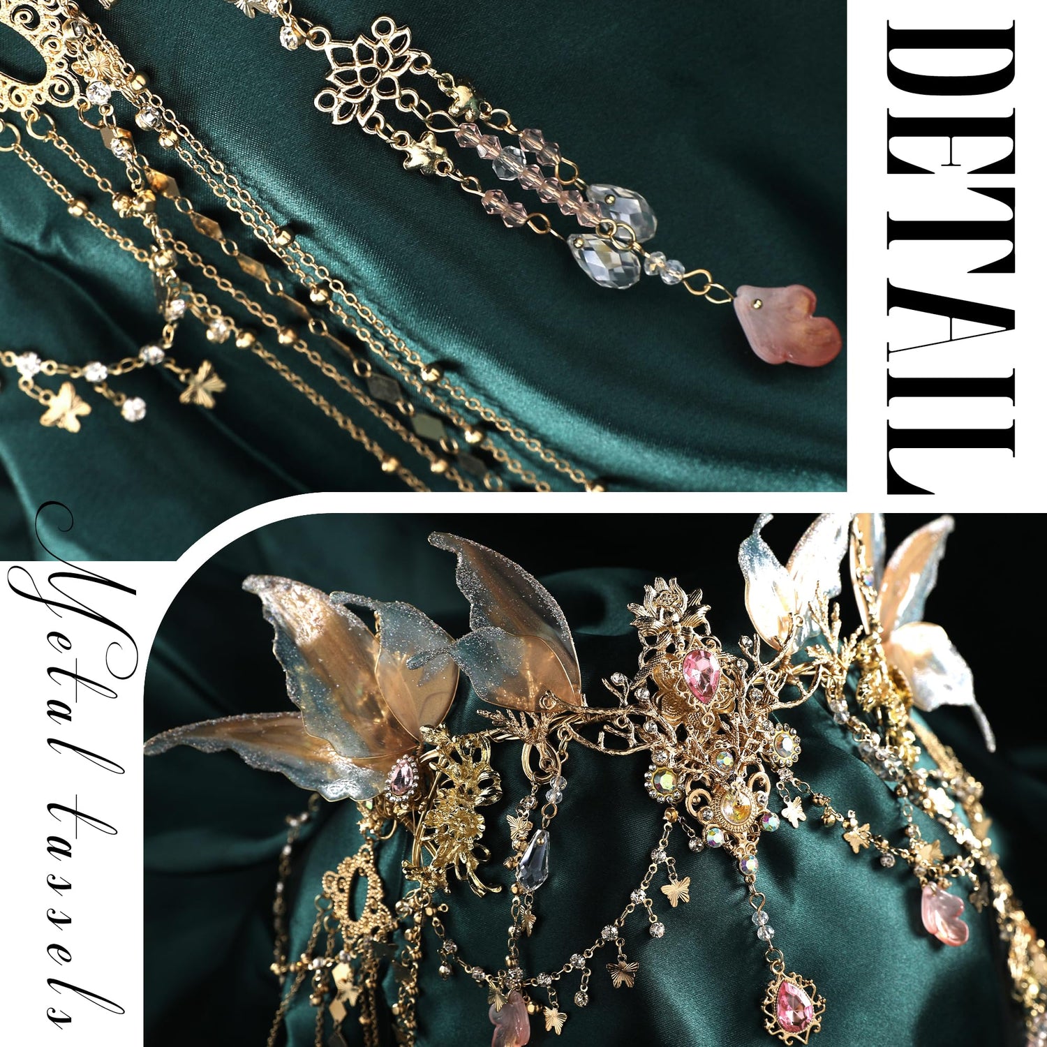 - Exquisite and Delicate Design: The charming fairy headpiece is intricately decorated with butterfly wings and the elf crown can provide a fairy-like atmosphere. The headwear with tassel features a chic and delicate design, making you look more attractive and classy;Please note that this product weighs 256g and may cause discomfort if worn for extended periods of time.