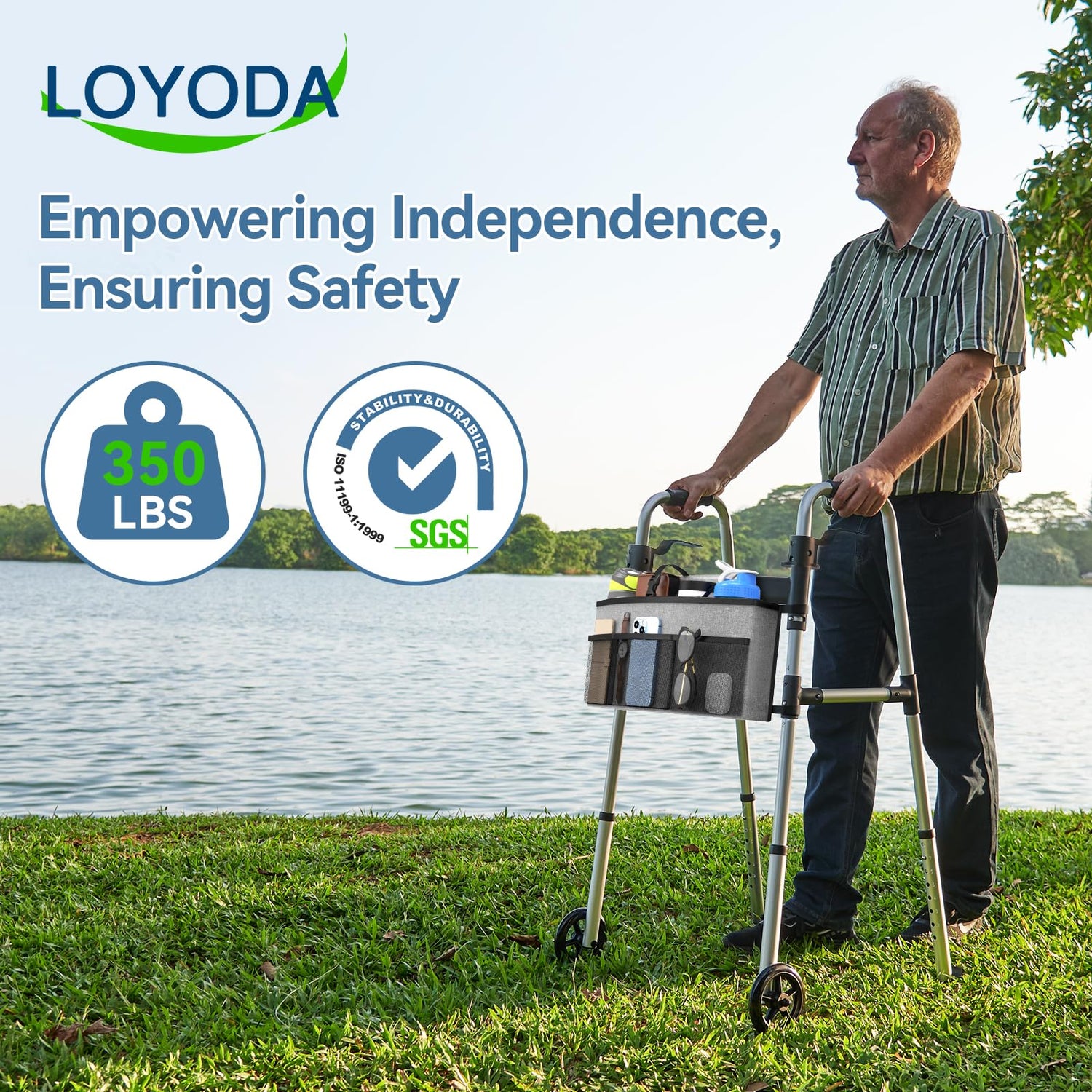 - Quality-assured & Service: People age. Standing or walking long distances gets hard. So staying active by using a walker to get around. The Loyoda walker has passed SGS ISO 11199-1:1999 testing. If you have questions, we're here to help