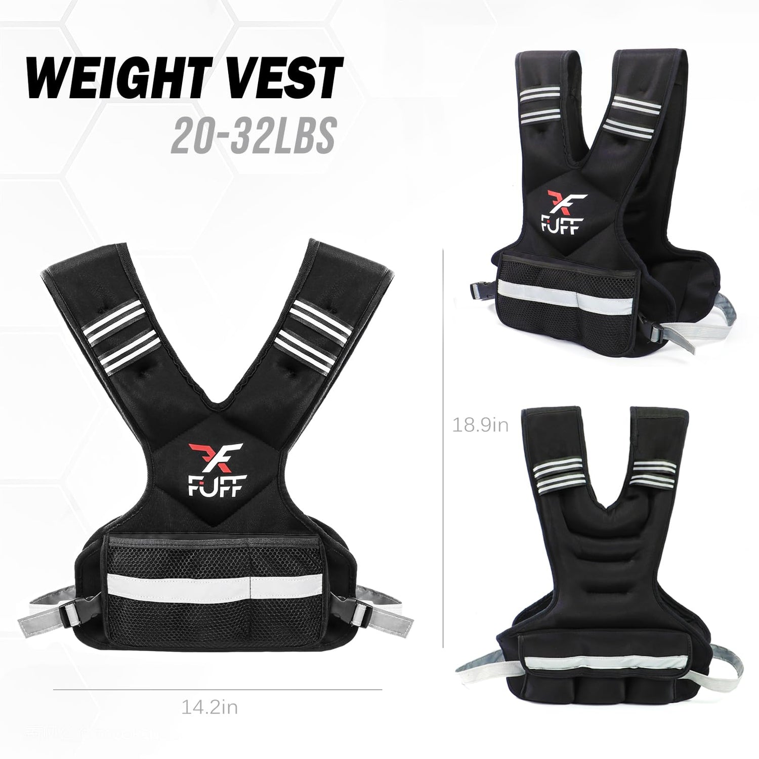 FUFF Adjustable Weighted Vest for Adult, 20-32lb Vest with 6 Ironsand Weights for Strength Training, Large Weight Vest with Reflective Strip for Men & Women
