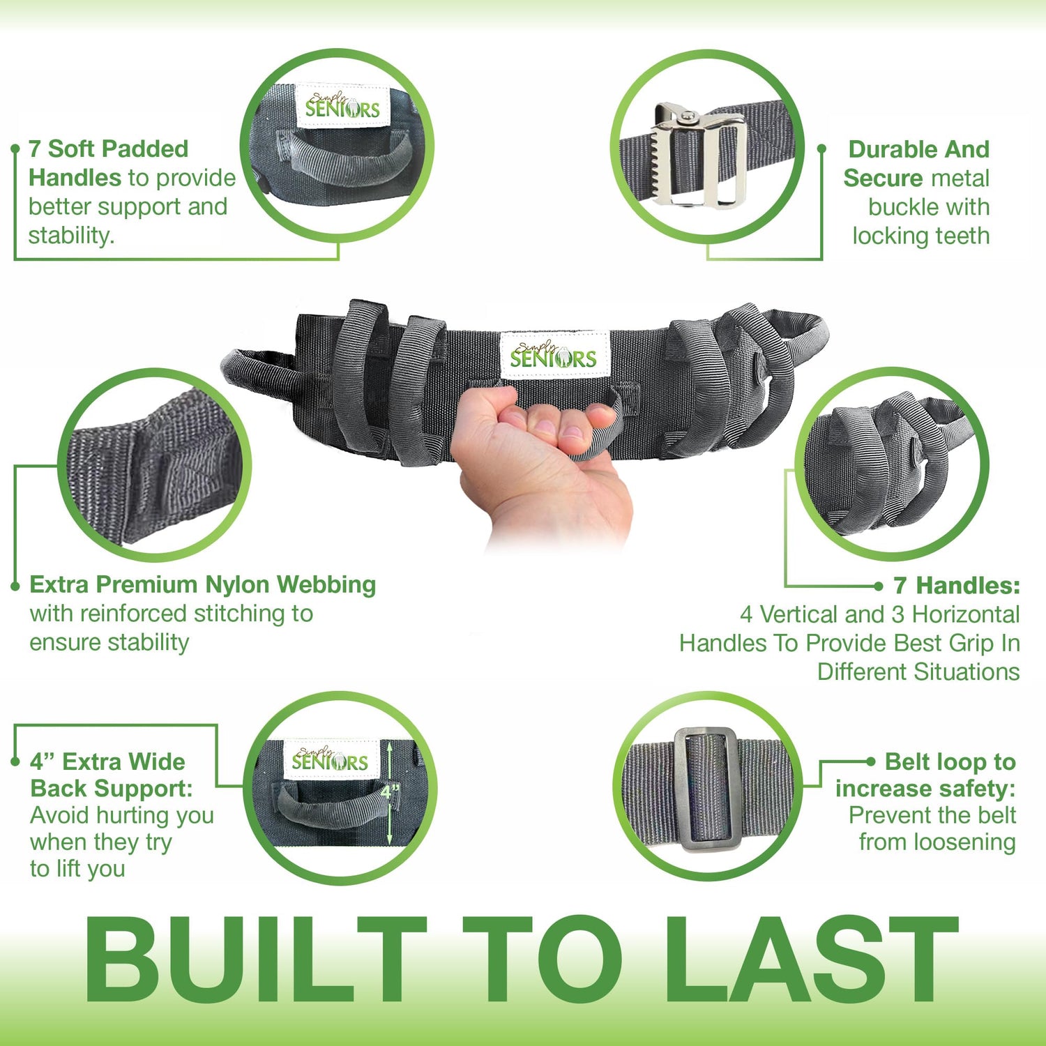 - 🆙 GET UP/DOWN EASILY AND IMPROVE YOUR BALANCE. If you have health problems, including balance and strength issues due to Parkinson's, dementia, a stroke, or after surgery, this belt is a must-have. Your caregiver or family member can easily lift you to a standing position using the sturdy handles without hurting you or helping you to feel secure when walking as he or she holds the loop on the back