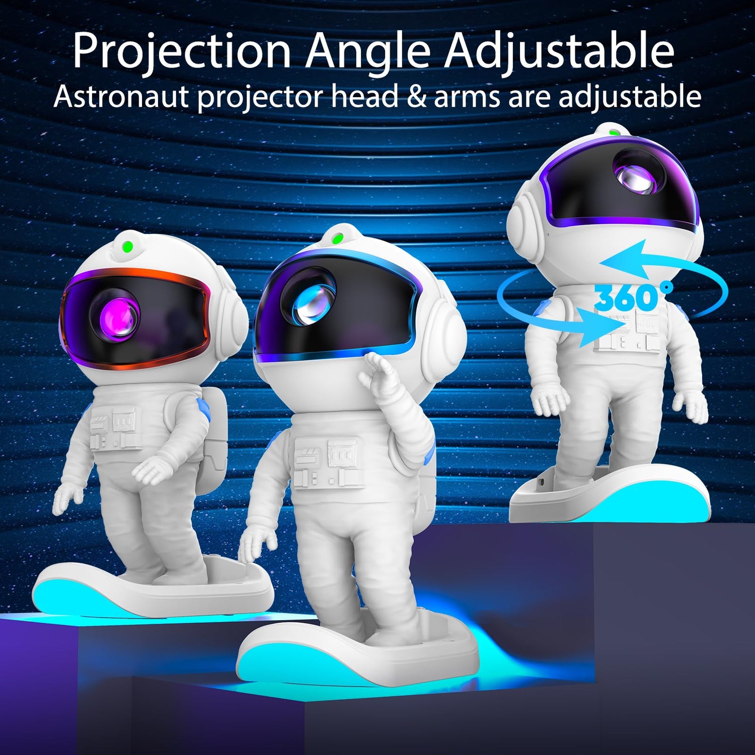 - [ Unique design star projector galaxy light ] Our star projector,exquisite appearance, perfect shape, and lighting design at the bottom. The head and the arm of the projector can be moved, it can pose in a variety of positions you want. Also, the cool thing is the base has a night light design, creat a space journey for children, which makes it not only a galaxy star projector but also a good-looking room decorative ornament.