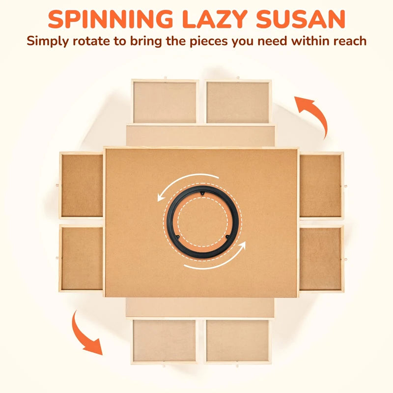 - Large Rotating Jigsaw Puzzle Board: This puzzle board holds up to 1500PCS puzzles. Suitable for playing alone or playing together.