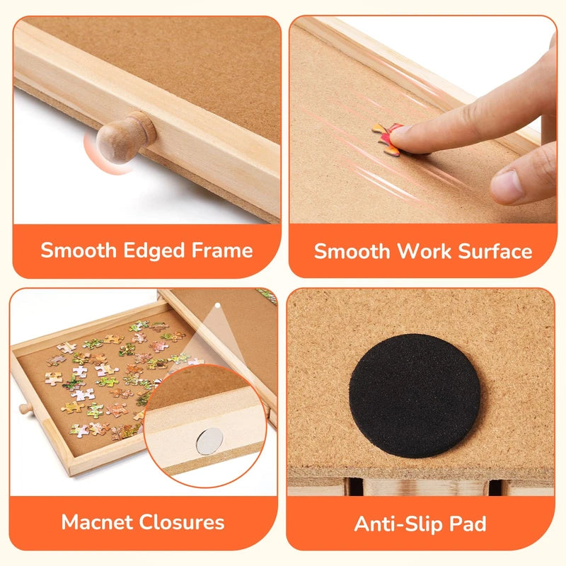 - Smooth Work Surface and Anti-slip Pad: This puzzle board has felt and smooth work surface. Very flat, puzzle pieces can move over the board nicely and easily. Plus there are 4 anti-slip pads on the back to keep board stable.