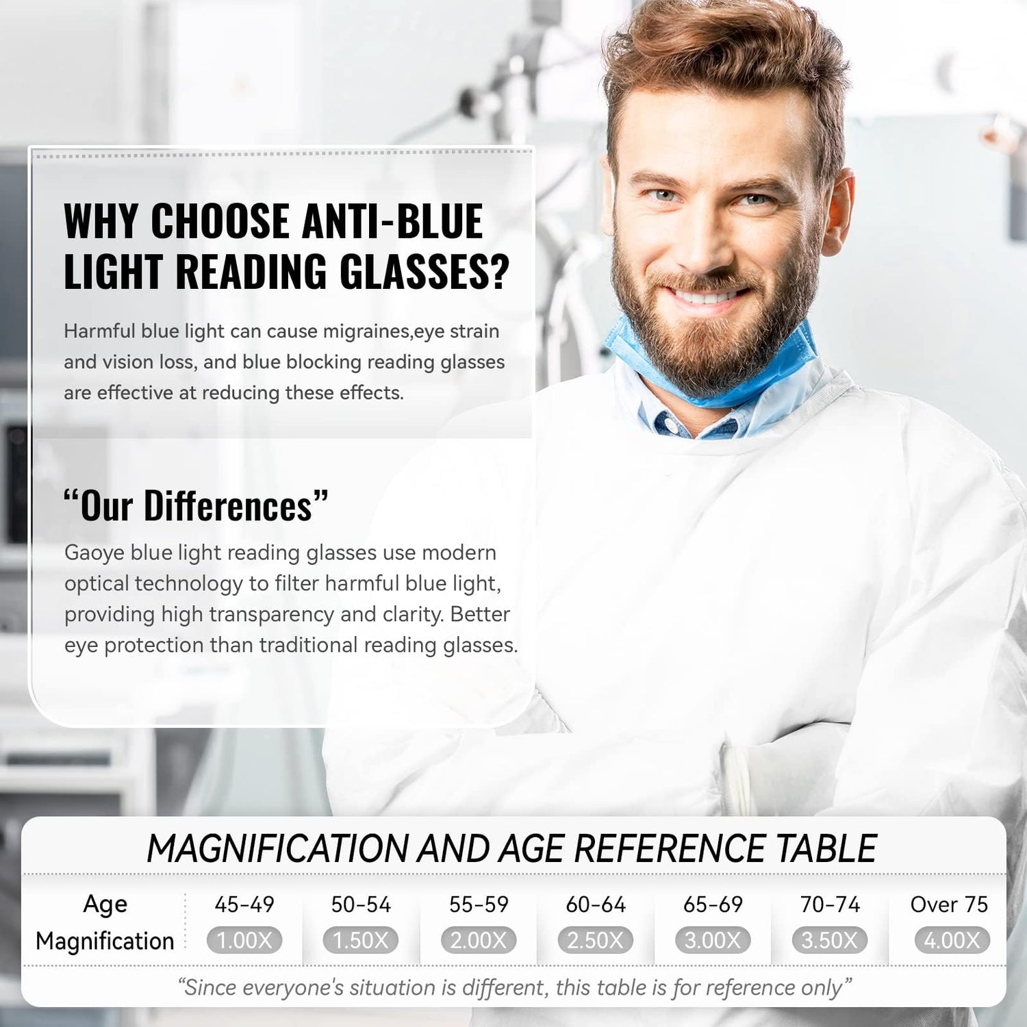 Gaoye Professional Reading Glasses for All Day - Computer Readers with Blue Light Protection - Value Pack