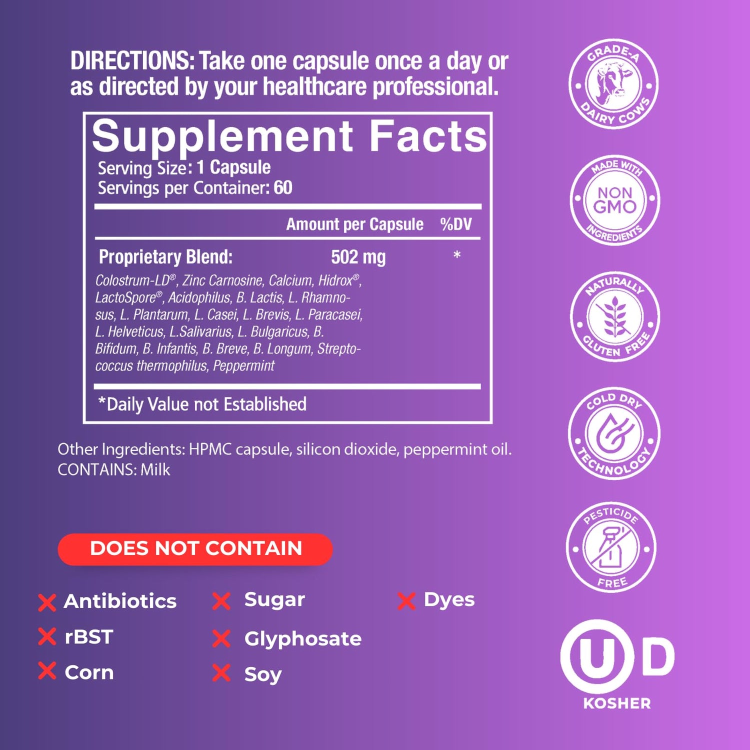 GastroDefense Stomach Armor - Shelf Stable Pre and Probiotic - Liposomal Colostrum-LD Enhanced. Beneficial Stains Colonize and Promote Gut Health, Designed for Adult Women and Men