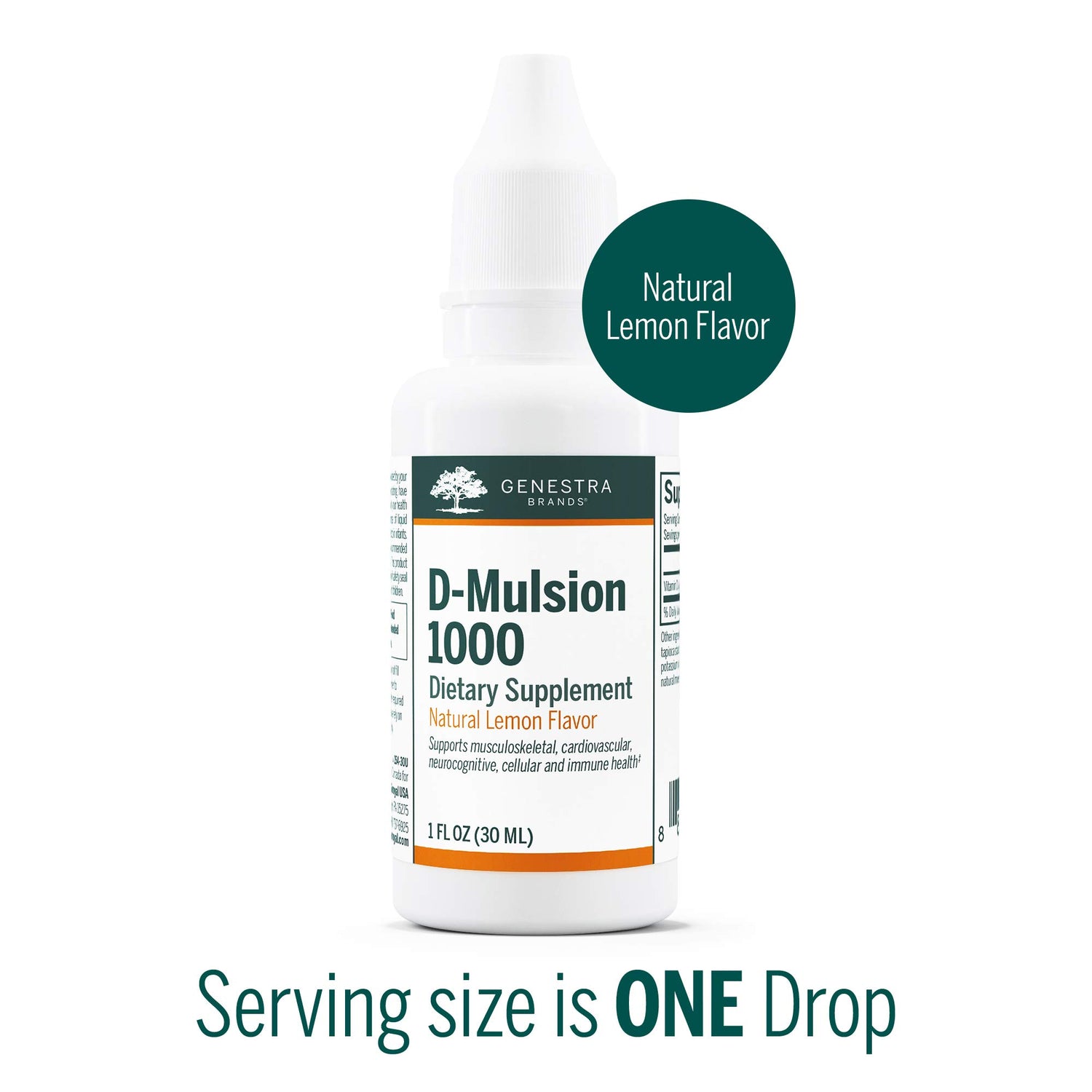 Genestra Brands D-Mulsion 1000 - Liquid Vitamin D Supplement - Natural Lemon Flavor - 1 Fl Oz