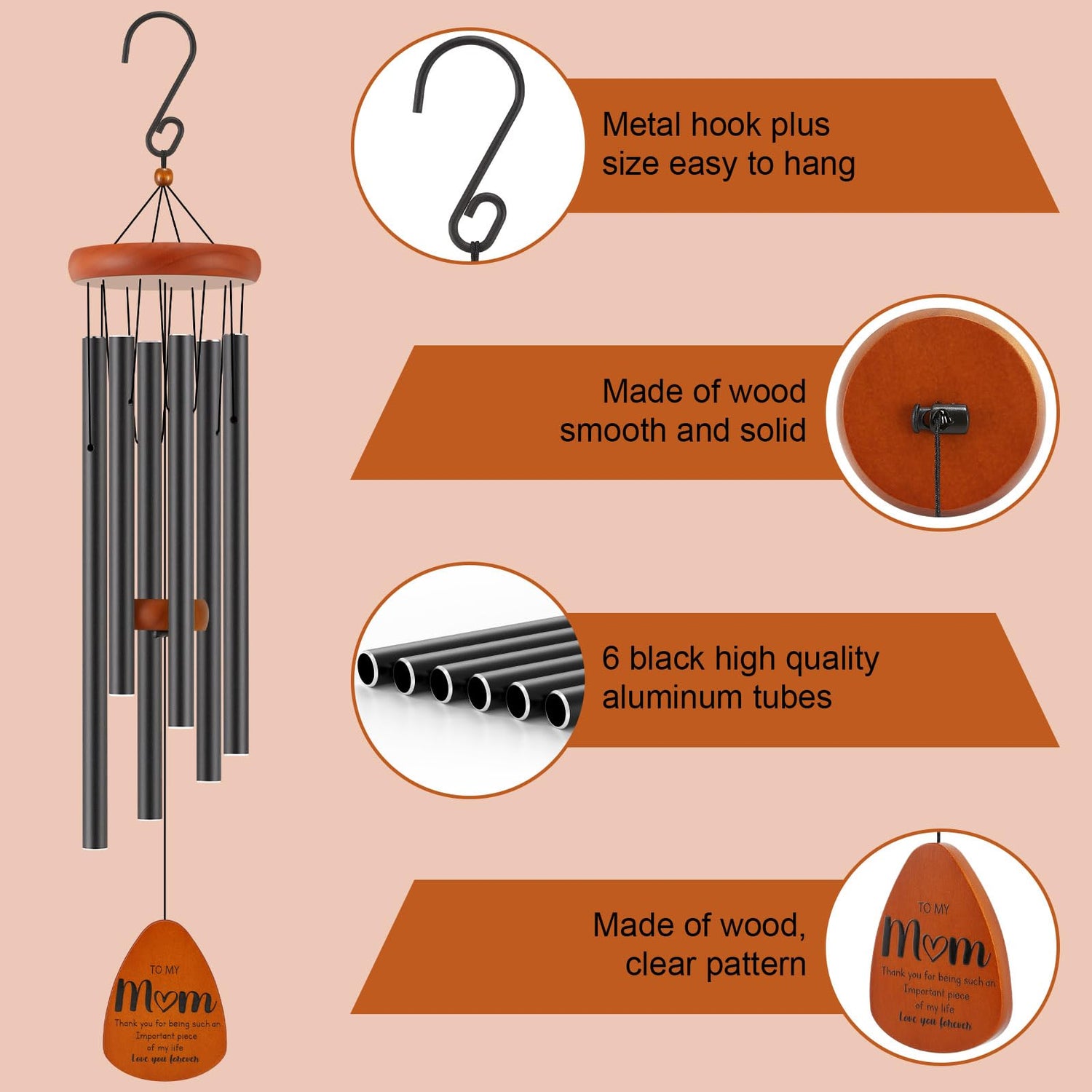 - Soothing Sounds for Relaxation: With its precise design and six thick-walled aluminum tubes, this wind chime gift produces soothing melodies, creating a serene atmosphere that promotes relaxation and tranquility. It's a perfect way to express your love and strengthen your bond with your mom.