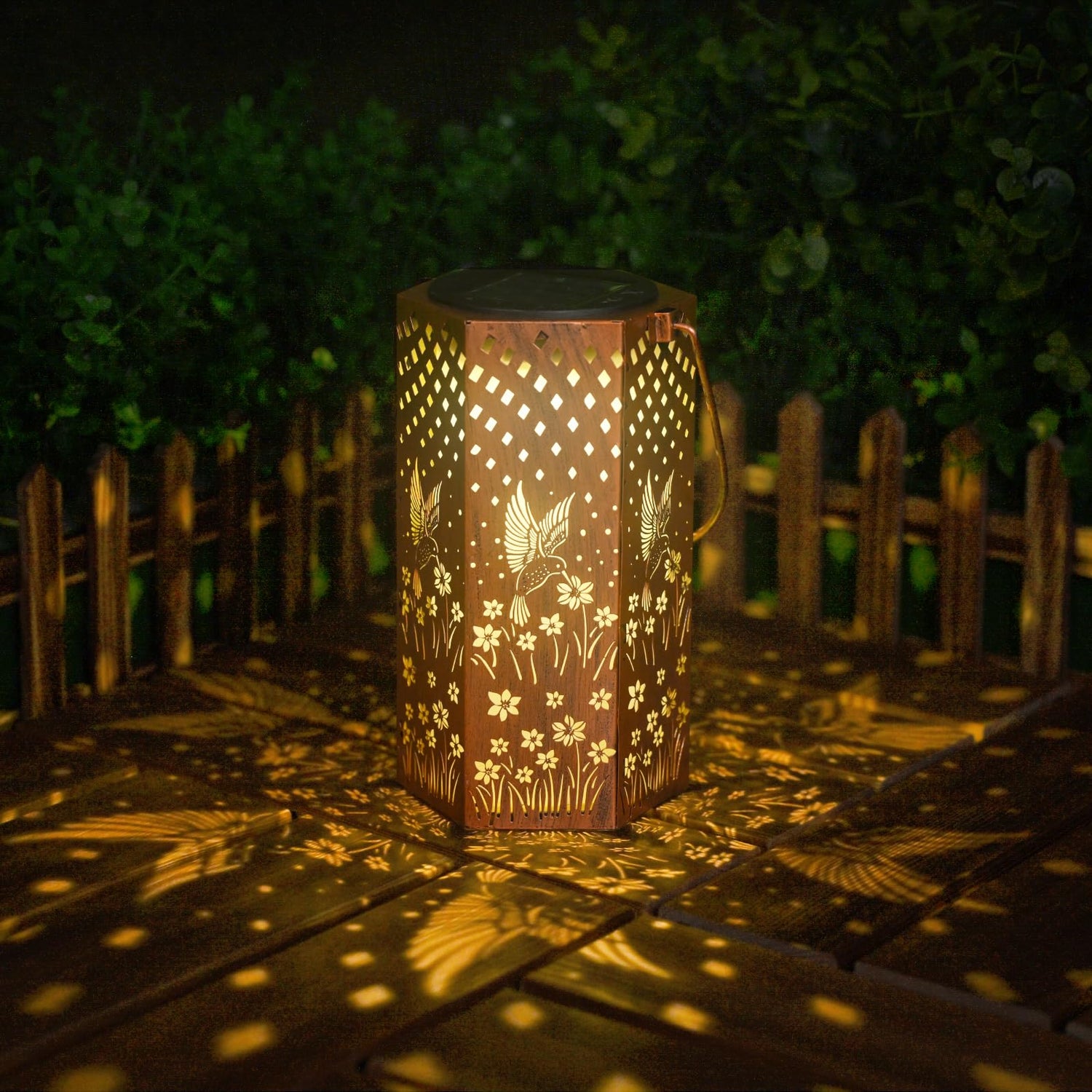 - Imaginative Garden Decor - Eandisom Outdoor Solar Lanterns are crafted from upgraded durable metal, The retro appearance, with gold copper color and hollow out metal veneer, gorgeous color, casts bright and warm light in darkness, accompanied by gorgeous and graceful patterns, adding a beautiful atmosphere to the surrounding environment. Add illuminated charm to a garden, patio, porch and outdoor tabletop with these solar lantern lights. Make your outdoor spaces unique and amazing.