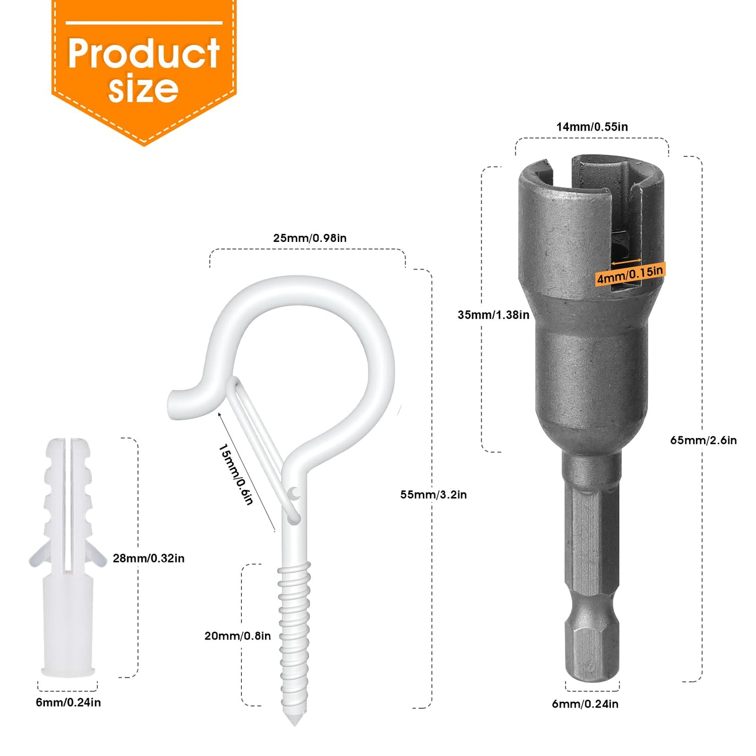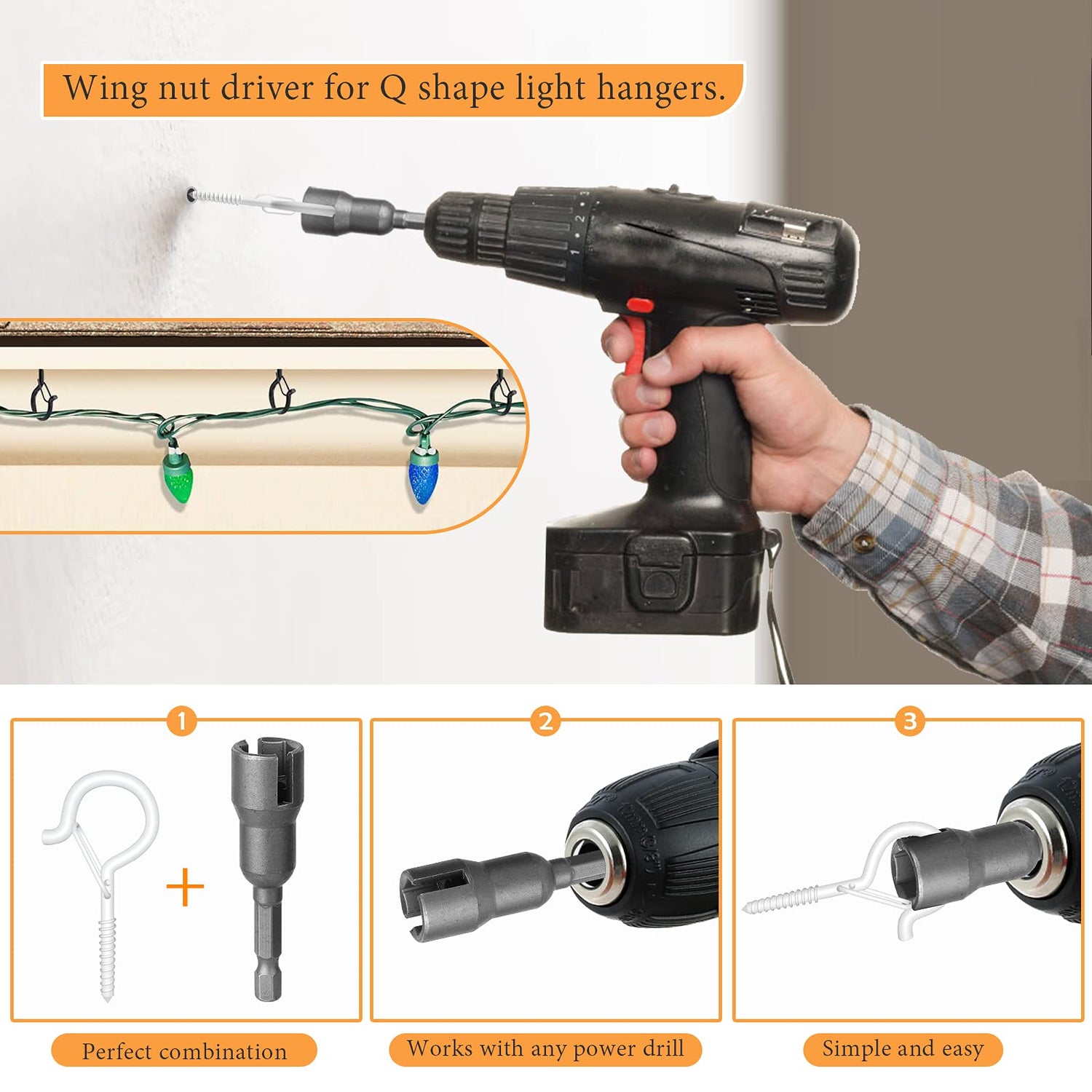 GIPTIME 50PCS Windproof Screw Q-Hanger Hooks with Safety Buckle for Hanging Outdoor String Lights, Plants, Christmas Decorations, Includes Wing Nut Driver, White is backordered and will ship as soon as it is back in stock.