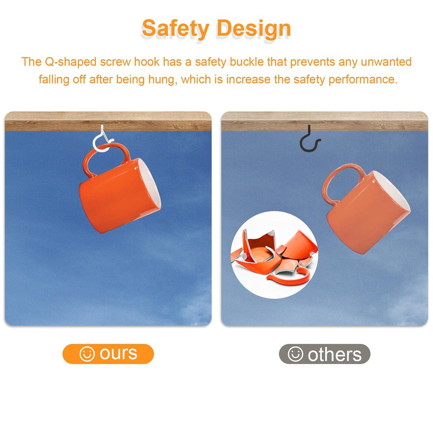 - Anti-Rust And Anti - Corrosion: Screw Hooks made of sturdy metal material, the surface is coated with black coating, which is not easy to break, rust, durable, windproof or weatherproof.Its service life is prolonged